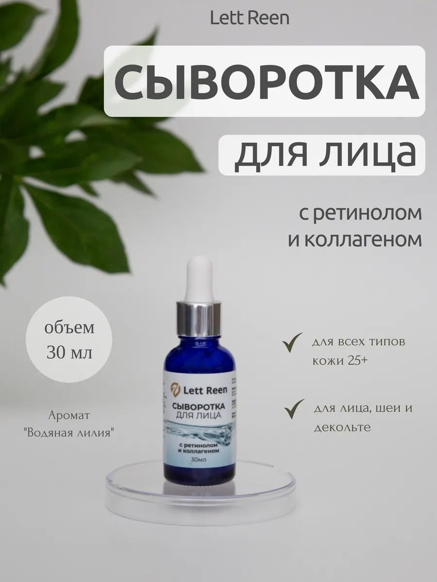 Волшебная сыворотка с ретинолом и коллагеном для сияющей, молодой кожи. Увлажняет, разглаживает морщины, выравнивает тон и повышает упругость. Аромат водяной лилии создает приятный ритуал красоты. Регулярное использование — залог здорового и ухоженного вида.