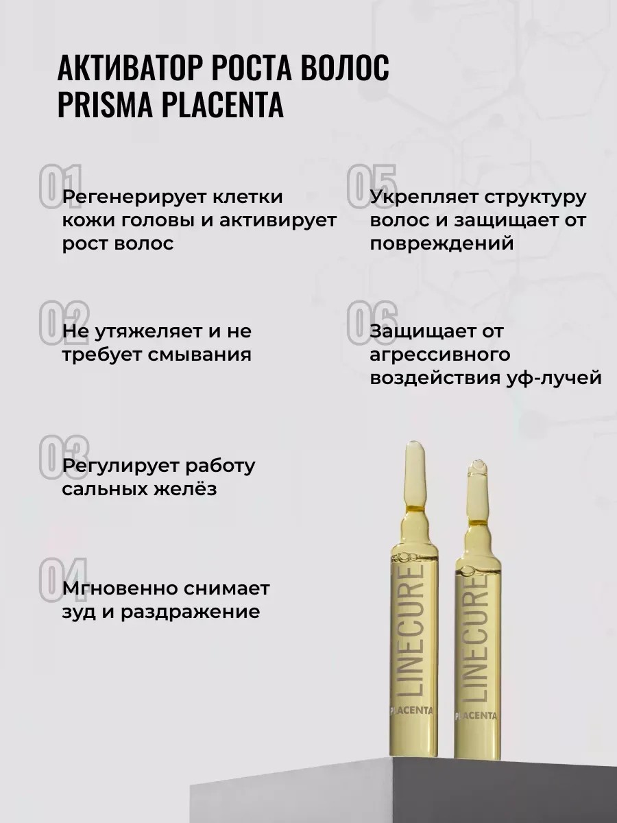 | Комплектация | Ампулы для роста волос Prisma Placenta, против выпадения, профессиональные, сыворотка - 12 ампул |