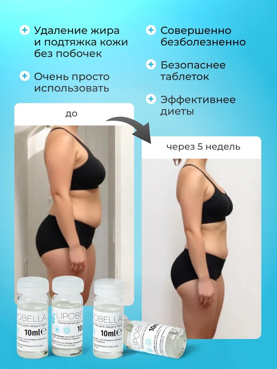 Мультифункциональная сыворотка липолитик на основе кофеина и гиалуроновой кислоты — современный способ борьбы против жировых отложений. Это идеальный выбор для женщин, желающих похудеть и избавиться от лишних сантиметров в таких проблемных зонах, как живот, ягодицы и бедра, убрать проявления целлюлита, сделать фигуру более подтянутой и привлекательной. Антицеллюлитный препарат с лифтинг эффектом, выпускаемый в удобной форме ампул, незаменим для ухода за лицом, помогает избавиться от отеков и растяжек, уменьшить морщины. Помимо сжигания жира, липолитик моделирует контуры тела, сужает талию и создает стройный красивый силуэт. Подтягивающий концентрат применяется в косметологии для коррекции таких зон, как руки и запястья, шея, подбородок и предплечья, для повышения упругости и эластичности кожи. Активное жиросжигающее средство предназначено исключительно для наружного применения и работает наиболее эффективно в сочетании с аппаратными процедурами, в частности, мезороллером или в мезотерапии, а также массажем или вакуумными банками. Ампульная сыворотка помогает добиться быстрого результата в домашних условиях без изнуряющих диет и сложных физических упражнений, проста в использовании и не имеет побочных эффектов. Натуральные компоненты в составе жиросжигателя расщепляют жир, способствуя похудению, после чего остатки жировых клеток безопасно выводятся организмом. Стойкий видимый эффект от жиросжигания наблюдается уже через 4-6 недель после начала курса. Не для инъекций. Способ применения: курс 1-2 месяца с таким же перерывом. Противопоказания: индивидуальная непереносимость компонентов.