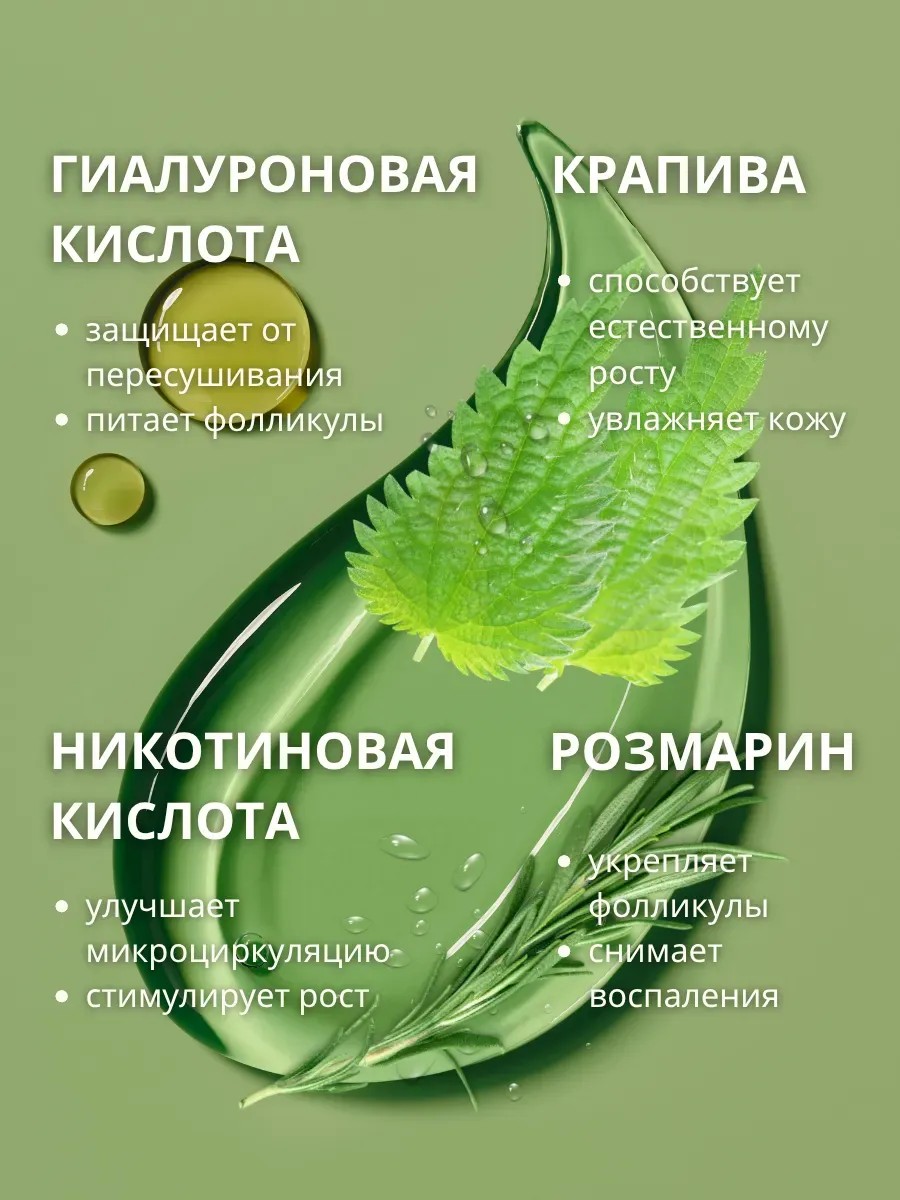 Doctor Hailer's Leave-In Hair Serum with Nettle and Nicotinic Acid is an effective hair and scalp care product that nourishes, moisturizes, and stimulates growth for all hair types. Developed by dermatologists and trichologists based on Dr. Hailer's formula, this serum helps restore hair density and thickness. The restorative effect is achieved through active ingredients. Nettle infusion saturates hair with essential vitamins for hair growth (K, B1, B2, C), trace elements (magnesium, iron, copper, silicon, calcium, manganese), and tannins, which protect hair from loss, premature baldness, alopecia, graying, split ends, and regulate sebaceous gland function. Nicotinic acid (vitamin PP) dilates peripheral blood vessels, improves the transport of oxygen and trace elements, and facilitates their absorption. Hyaluronic acid (low and high molecular weight) saturates the scalp and hair follicles with nutritional microelements, catalyzing the production of proteins, collagen, and elastin, thereby stimulating blood circulation and improving metabolism. Panthenol and silk proteins easily settle on the surface of the hair and skin, providing prolonged hydration, forming a protective film, removing static electricity, and adding shine, volume, and manageability. Essential oils of lemon, neroli, and rosemary offer ingredients with pronounced antibacterial, anti-inflammatory, and regenerating properties. Suitable for both men and women, for normal, dry, combination, and oily scalps, as well as for hair prone to oiliness and hair loss. Important! Contains no silicones, sulfates, or parabens, and no synthetic dyes or fragrances that can strip beneficial elements. Suitable for hair treated with keratin or Botox, for preventative care, and for daily use. Directions: Apply serum to scalp, massage in, and do not rinse. Recommended course of use: 3 months.