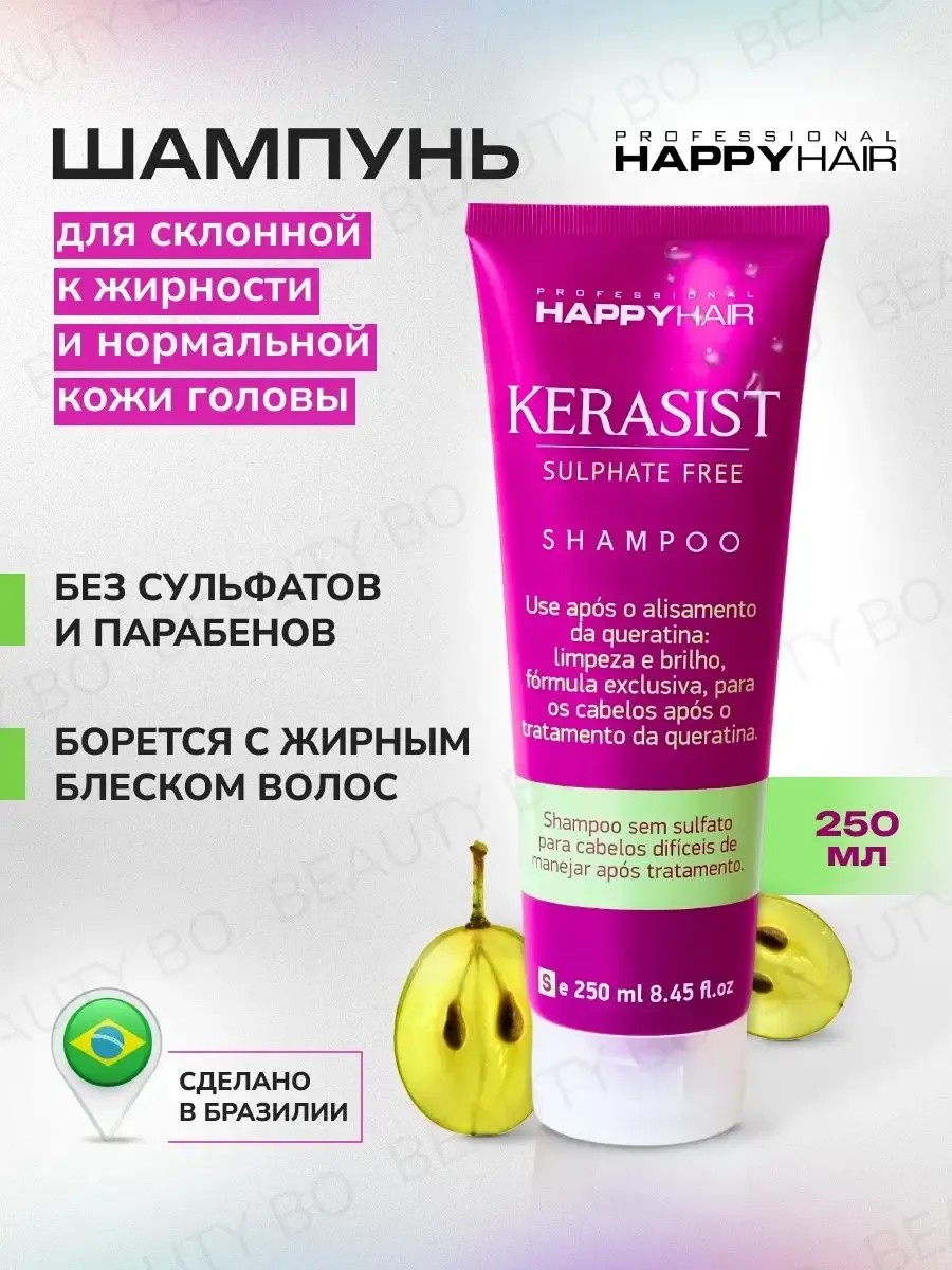 Вы хотите, чтобы ваши волосы выглядели роскошно и удивляли всех окружающих блеском и красотой? Тогда вам нужен профессиональный набор: шампунь, кондиционер и маска Happy Hair KST ( KERASIST ). Комплект бессульфатный шампунь, бальзам и маска на экстракте виноградной косточки. В составе масла виноградной косточки содержатся антиоксиданты, хлорофилл, витамины, протеин, минералы, жирные кислоты – олеиновая, арахиновая и линолевая. Не содержит сульфатов SLS, SLES и парабенов. Шампунь борется с жирным блеском волос и питает кожу головы. Позволяет укрепить пряди, предотвратить излишнюю ломкость и выпадение, убирает секущиеся кончики. Не содержит сульфатов SLS, SLES и парабенов. Филер идеально для ухода после процедуры кератинового выпрямления, нанопластики, ламинирования, химических процедур, кератин и ботокса. Нормализует работу волосяных фолликул, восстанавливает естественную первозданную гладкость, уменьшает ломкость и облегчает расчесывание, облагораживая сияющим блеском. Очищающий безсульфатный шампунь глубокой очистки рекомендован тем, кому требуется щадящий уход за волосами, в случае особой чувствительности кожи головы, а также для кудрявых волос, обладательницам кудряшек – волосы не пушатся и отлично держат упругий завиток, для объема волос. Шампунь KERASIS для волос женский и силиконовая маска позволяют достичь эффекта профессиональных салонных процедур в домашних условиях, придает волосам здоровый вид. Этот shampoo, профессиональный ополаскиватель и mask для волос идеально подходят для тех, кто хочет, чтобы их волосы выглядели потрясающе без необходимости тратить кучу денег на дорогие средства и основные салонные процедуры.