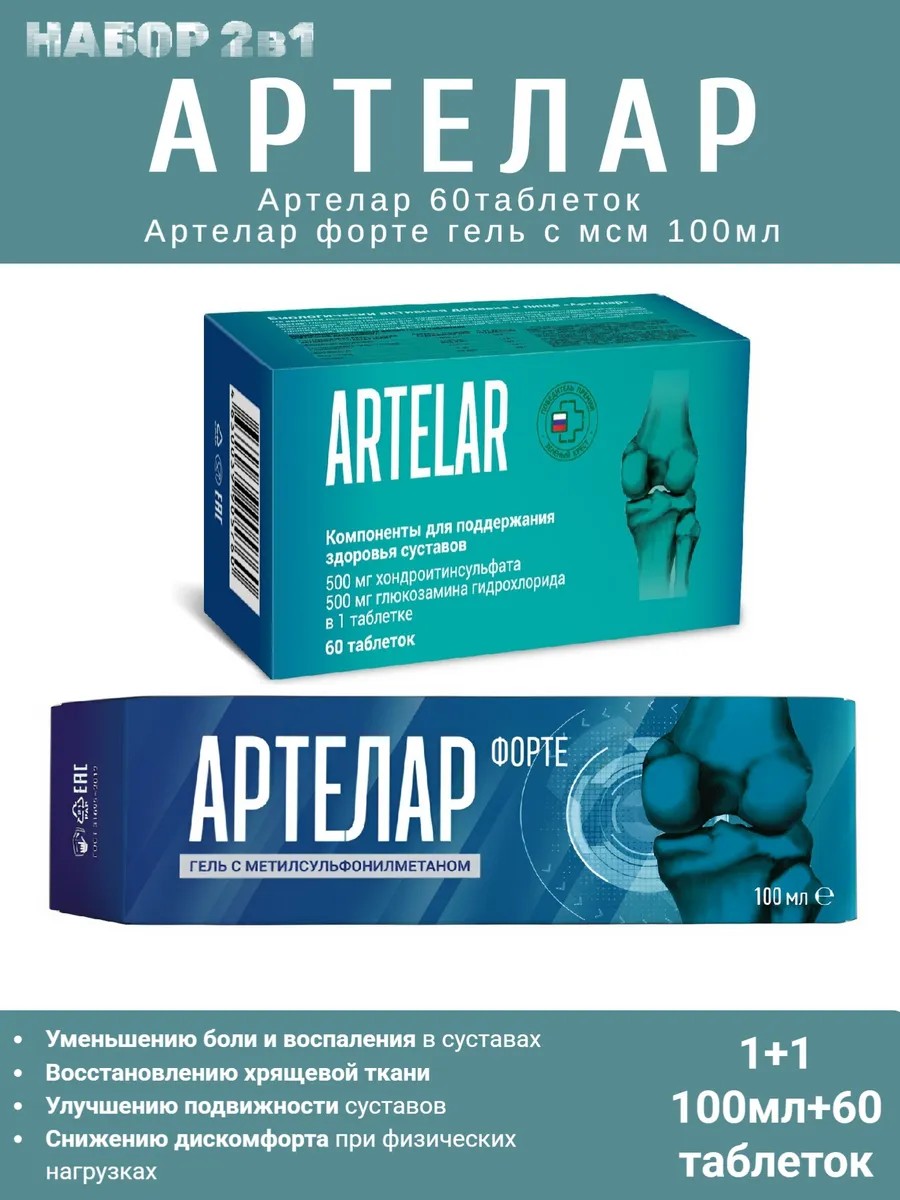 | Комплектация | Artelar 60 таб; Artelar форте гель 100 мл |