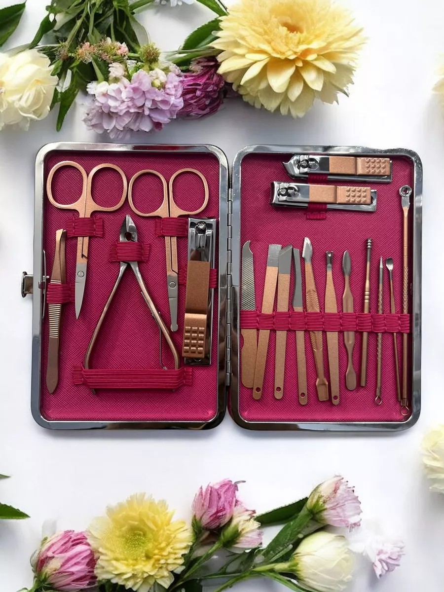 Многофункциональный, маникюрный набор, из 18 предметов идеален для комплексного домашнего или профессионального ухода. Набор долговечен, выполнен из высококачественного материала, лезвия изготовлены из нержавеющей стали. Маникюрный набор содержит инструменты, для маникюра, педикюра, ухода за лицом. Инструменты для маникюра поставляются в стильном компактном футляре . Набор легко умещается в любую сумочку и не заменим в путешествиях. Продуманный дизайн защищает содержимое от повреждений. А приятная эффектная упаковка делает этот, набор для маникюра полезным и желанным, подарком для семьи, друзей и коллег в качестве инструментов личной гигиены. Маникюрный набор, цена которого указана вместе с футляром, является предметом личной гигиены. Передавать инструменты другим людям не рекомендуется. После применения предметы, которые использовались для ухода, нужно очистить от частичек кожи, ногтей и волосков. При необходимости выполнить дезинфекцию. Хранить профессиональный маникюрный набор для ногтей нужно в сухом месте. Не подвергать воздействию кислот и щелочей!