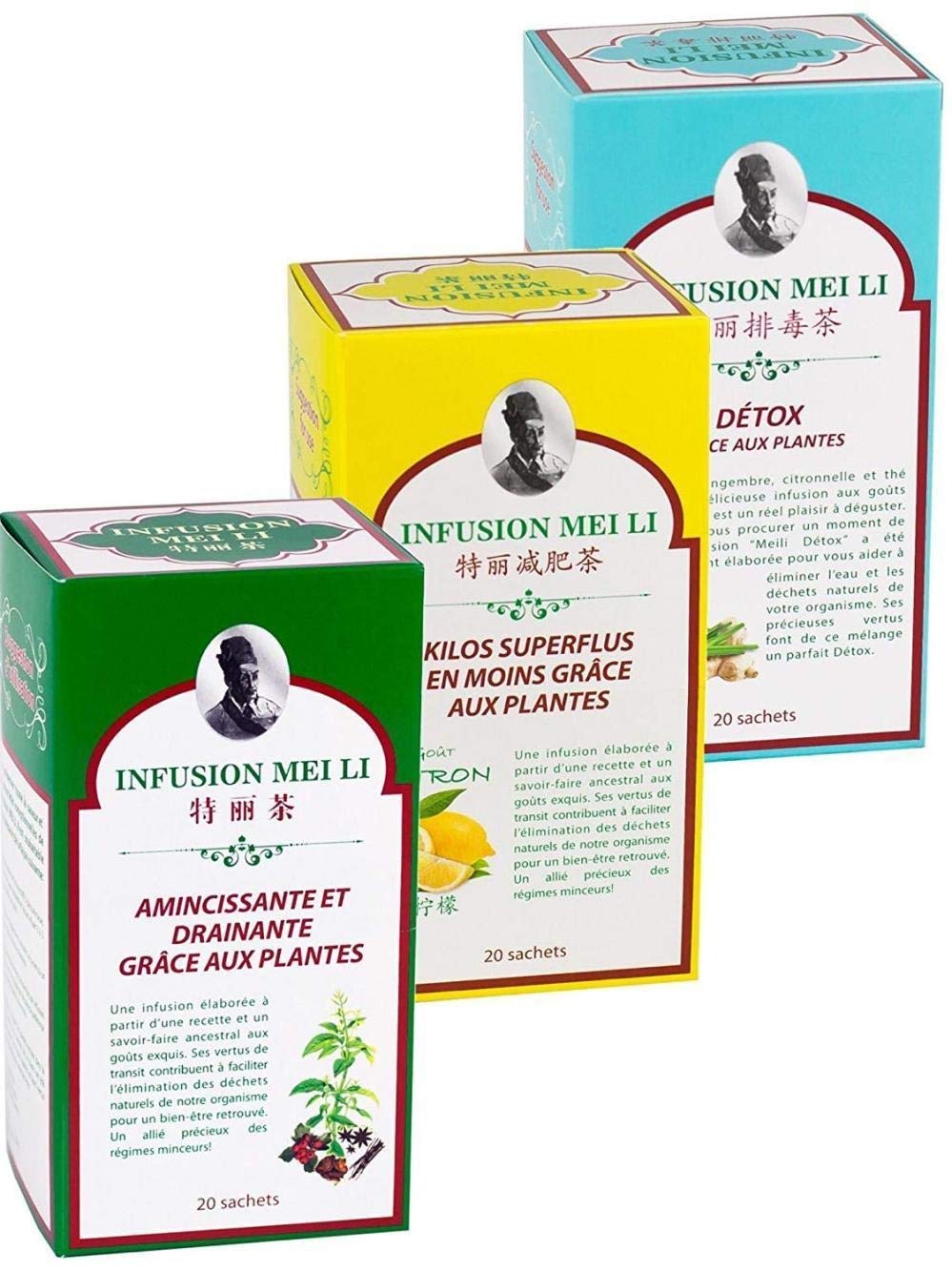 An infusion made from a recipe and ancestral know-how with exquisite tastes. Its transit virtues help to facilitate the elimination of natural waste from our body for a restored well-being. A valuable ally for slimming diets! INGREDIENTS Ing DRAINANT: Chinese green tea, licorice root, anise fruit, peppermint, rhubarb. Ing KILO SUP.: Green tea, ginger, lemongrass, ginger flavor, rhubarb. Ing DETOX: Green tea, ginger, lemongrass, ginger flavor, rhubarb DIRECTIONS FOR USE 1. Place a bag in a cup or teapot. 2. Pour hot water over the bag. 3. Let it infuse for the recommended time. An infusion made from a recipe and ancestral know-how with exquisite flavors. Its transit properties help facilitate the elimination of natural waste from our body for a restored sense of well-being. A valuable ally for weight-loss diets! Une infusion élaborée à partir d'une recette et un savoir-faire ancestral aux goûts exquis. Ses vertus de transit contribuent à faciliter l'élimination des déchets naturels de notre organisme pour un bien-être retrouvé. Un allié précieux des régimes minceurs ! INGRÉDIENTS Ing DRAINANT: Le thé vert chinois, racine de réglisse, fruit d'anis, menthe poivrée , rhubarbe. ing KILO SUP.: Thé vert, gingembre, citronnelle, arôme gingembre, rhubarbe. Ing DETOX :Thé vert, gingembre, citronnelle, arôme gingembre, rhubarbe MODE D'EMPLOI 1. Placez un sachet dans une tasse ou une théière. 2. Versez de l'eau chaude sur le sachet. 3. Laissez infuser pendant le temps recommandé. Une infusion élaborée à partir d'une recette et un savoir-faire ancestral aux goûts exquis. Ses vertus de transit contribuent à faciliter l'élimination des déchets naturels de notre organisme pour un bien-être retrouvé. Un allié précieux des régimes minceurs !.