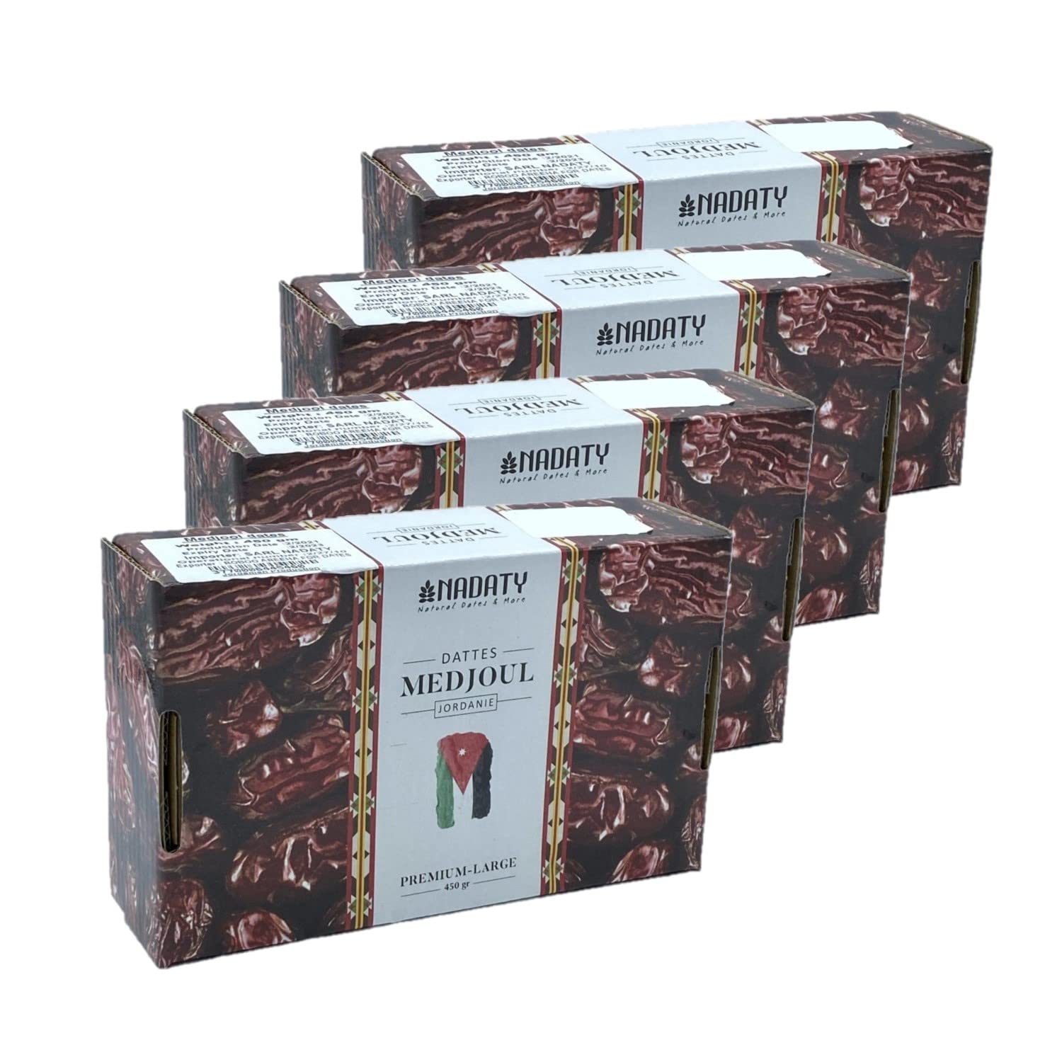 This lot contains 4 products described below: The medjoul date is nicknamed the "date of kings" or the "queen of dates". It is the largest of dates, it is plump, fleshy, particularly creamy with a sublime taste. The date is a delicious cocktail of minerals: nutritious, tender, generous, anti-fatigue, it is considered an energy recharger. Cultivated in Jordan, this crop extends over 8,600 hectares with around 550,000 date palms. Ingredients : Date. Allergens: None Storage method: Store at room temperature, away from heat and humidity before opening. Directions for use: For a delicious and energizing snack. Product information: Net weight: 450g Origin: Jordan Nutritional values per 100g: Energy: 1158KJ 277Kcal Lipids: 0g including 0g saturated fatty acids Carbohydrates: 75g including sugars 66g Protein: 1g Dietary fiber: 7g Salt: 0g Packaging: Carton Box Full details available on the product packaging. The information on this page is for information purposes only. We encourage you to read the information on the product label, particularly regarding food allergies. INGREDIENTS Date. SAFETY WARNING Full details available on the product packaging. The information on this page is for information purposes only. We encourage you to read the information on the product label, particularly regarding food allergies. Vegetarian - Cuisine: Middle Eastern. Gluten-free Lactose-free No added sugar No added sugar No preservatives No coloring. Fleshy fruit, creamy consistency, remarkable taste. Allergen list: None. Ingredients list: Date. Ce lot contient 4 produits décrits ci-dessous : La datte medjoul est surnommée la "datte des rois" ou encore la "reine des dattes". C'est la plus grosse des dattes, elle est dodue, charnue particulièrement crémeuse avec un sublime goût. La datte est un délicieux cocktail de minéraux : nutritive, tendre, généreuse, antifatigue elle est considérée comme une recharge d'énergie. Cultivée en Jordanie, cette culture s'étend sur 8600 hectares pour environ 550 000 palmiers dattiers. Ingrédients : Datte. Allergènes : Aucun Mode de conservation : A conserver à température ambiante, à l'abri de la chaleur et de l'humidité avant ouverture. Conseil d'utilisation : Pour un encas gourmand et énergisant. Informations produit : Poids net : 450g Origine : Jordanie Valeurs nutritionnelles pour 100g : Energie : 1158KJ 277Kcal Lipides : 0g dont acides gras saturés 0g Glucides : 75g dont sucres 66g Protéines : 1g Fibres alimentaires : 7g Sel : 0g Emballage : Boîte en Carton Détail complet et disponible sur l'emballage du produit. Les informations présentes sur cette page sont à titre indicatif. Nous vous invitons à prendre connaissance des informations sur l'étiquette du produit, en particulier concernant les allergies alimentaires. INGRÉDIENTS Datte. AVERTISSEMENT DE SÛRETÉ Détail complet et disponible sur l'emballage du produit. Les informations présentes sur cette page sont à titre indicatif. Nous vous invitons à prendre connaissance des informations sur l'étiquette du produit, en particulier concernant les allergies alimentaires. Végétarien - Type de cuisine : du Moyen-Orient. Sans gluten Sans lactose Sans sucre ajouté Sans sucre ajouté Sans conervateur Sans colorant. Fruit charnu, consistance crémeuse, goût remarquable. Liste des allergènes : Aucun. Liste des ingrédients : Datte.