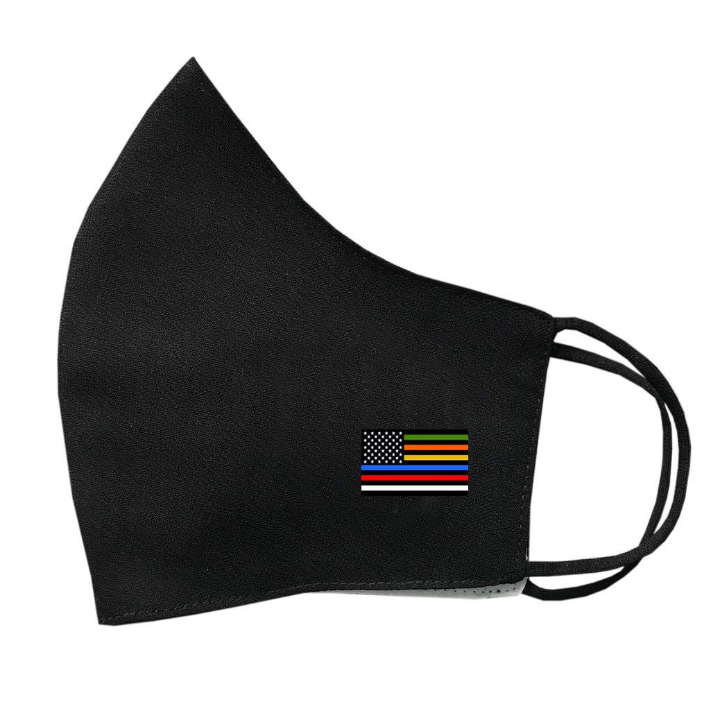 Pack of 4 x USA First Responders Flag Cotton Masks WASHABLE REUSEABLE BREATHABLE Made with 100% Cotton Printed on one side of the mask only. measures approx. 14.5 cm x 13 cm