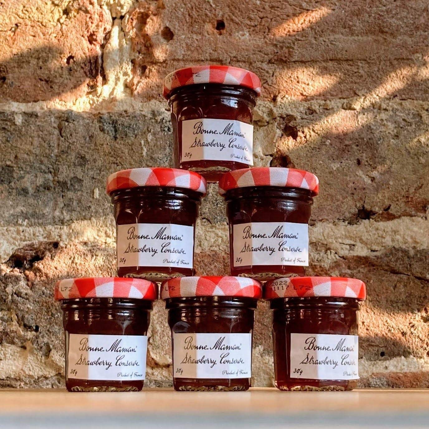 Available flavors: Strawberry, Raspberry, Bitter Orange Marmalade, Blackcurrant, Apricot Honey. Bonne Maman Preserves are perfect for your breakfast table, afternoon tea, or baking. Get ready for a treat with classic, delicious strawberry! These little jars of preserves make a perfect gift and are conveniently sized for your handbag. Made with natural ingredients No artificial coloring No artificial preservatives Ingredients Strawberry, sugar, cane sugar, concentrated lemon juice, gelling agent (fruit pectin). Prepared with 50g of fruit per 100g of finished product. Product weight: 30g Nutrition Suitable for vegetarians Allergy advice: INGREDIENTS Apricots, sugar, cane sugar, concentrated lemon juice, gelling agent (fruit paste), prepared with 50g of apricots per 100g, total sugar content: 60g per 100gLot de 6 mini confitures Bonne Maman Conserve 30 g - 6-70 - Fraise Framboise Marmelade Cassis Miel Abricot - 15 mini pots de 30 g - AbricotDESCRIPTION DU PRODUIT DESCRIPTION DU PRODUIT Saveurs disponibles: Fraise, Framboise, Marmelade d'orange amère, Cassis, Abricot miel. Les Conserves Bonne Maman sont parfaites pour votre table de petit-déjeuner, thé de l'après-midi ou pâtisserie. Vous êtes prêt pour un régal avec la fraise savoureuse classique! Ces petits pots de confiture font un cadeau parfait et sont agréables et faciles à ranger dans votre sac à main. Fabriqué à partir d'ingrédients naturels Pas de coloration artificielle Sans conservateurs artificiels Ingrédients Fraise, sucre, sucre de canne, jus de citron concentré, gélifiant (pectine de fruit). Préparé avec 50g de fruits par 100g de produit fini. Poids du produit: 30g Nutrition Convient aux végétariens Conseils sur les allergies : INGRÉDIENTS Abricots, sucre, sucre de canne, jus de citron concentré, agent gélifiant (pétine aux fruits), préparé avec 50 g d'abricots pour 100 g, contenu total du sucre : 60 g par 100 g