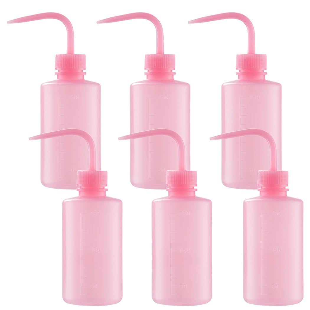 Set of 6 eyelash wash bottles with curved nozzle and leak-proof cap ideal for rinsing eyelashes and laboratory use 250 ml