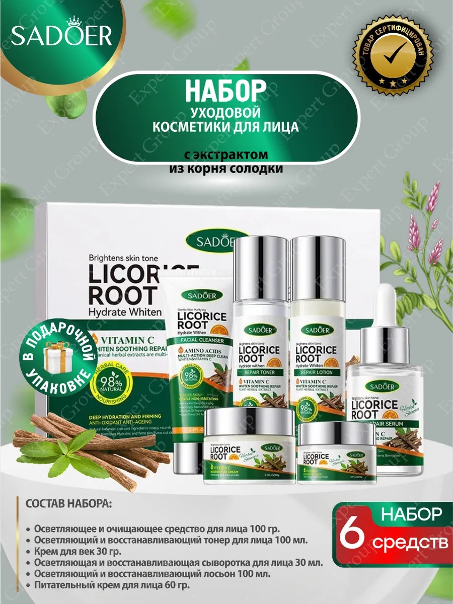 | Комплектация | Набор уходовой косметики для лица Sadoer с экстрактом из солодки |