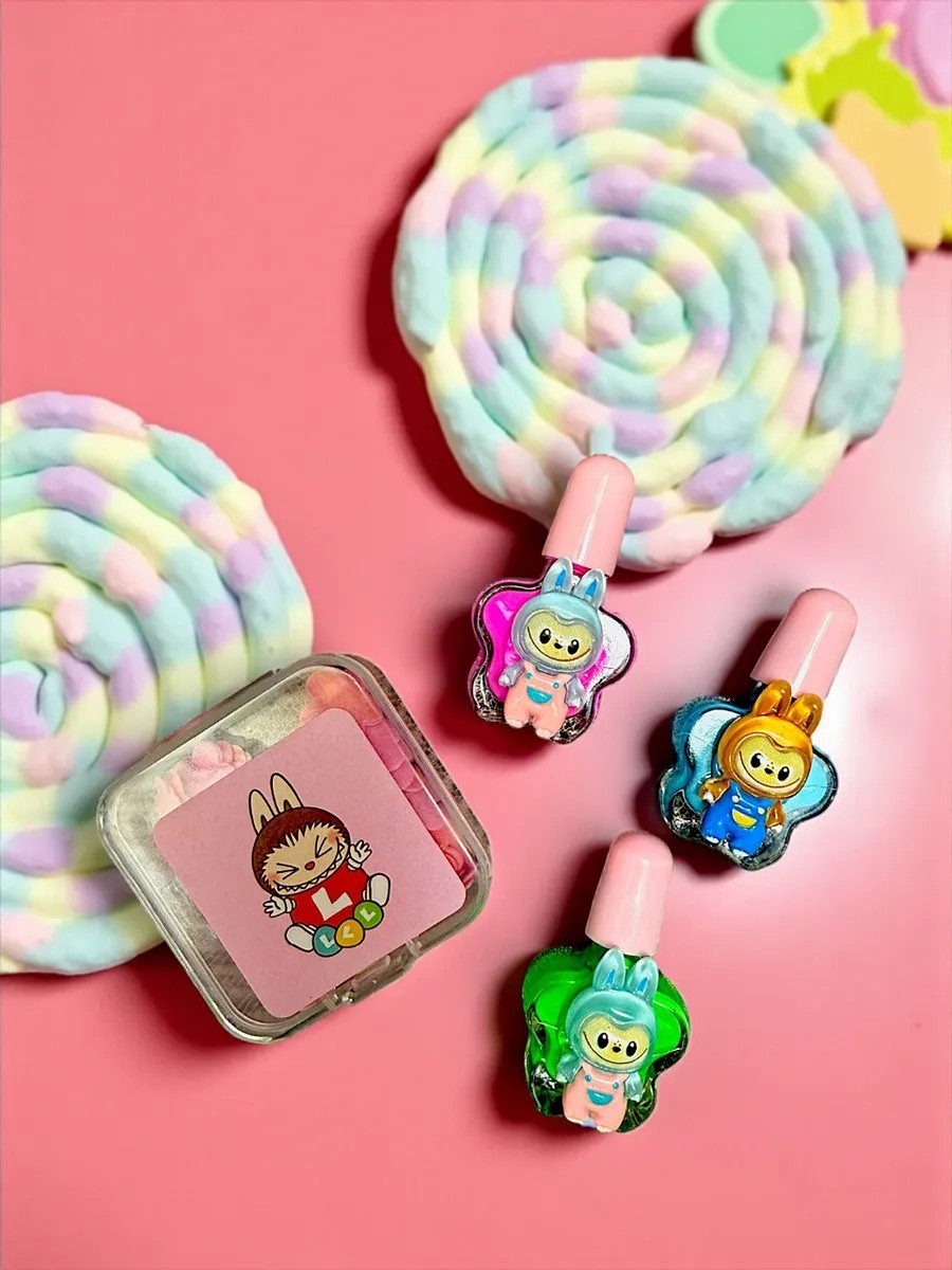 3 лака для ногтей.Оформление с Лабубу — особый бонус для любителей милоты. Расцетка лаков - сюрприз. Лаки на водной основе: безопасны для детей.