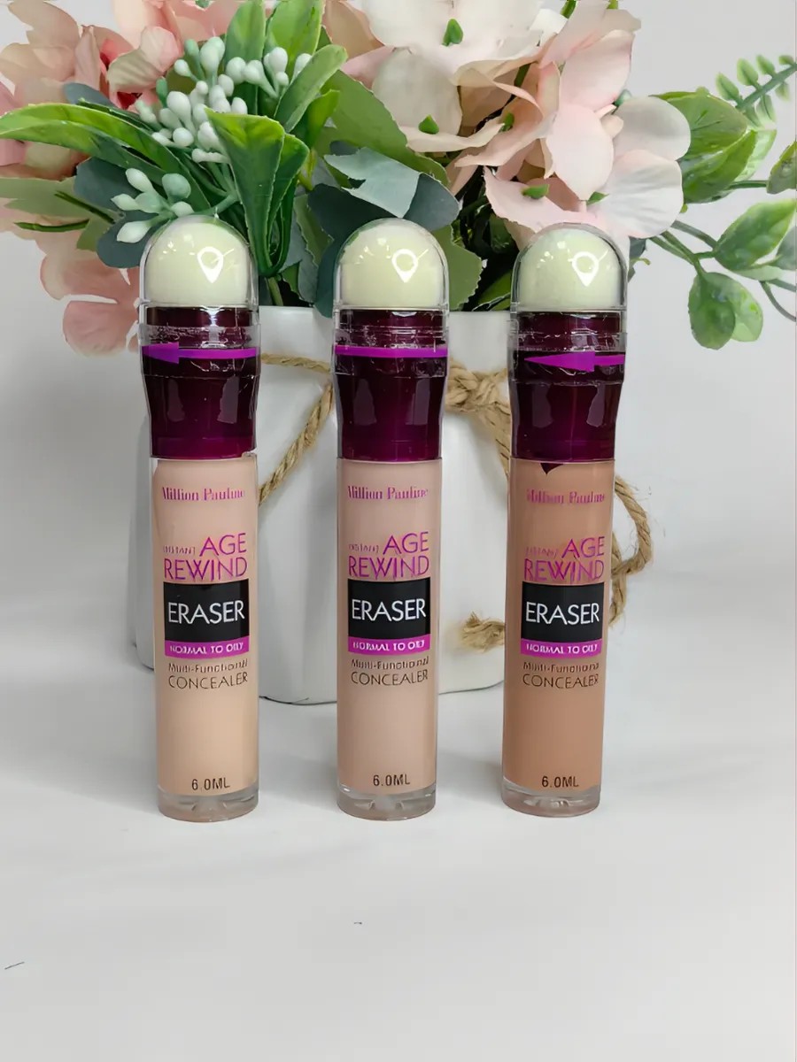 The Anti-Age Eraser 3-Piece Concealer and Sponge Set is the perfect solution for flawless makeup. This set includes three creamy concealers that glide on easily and conceal imperfections like dark circles, redness, and age spots. The waterproof formula ensures makeup lasts all day, and the matte finish leaves skin feeling velvety smooth. These concealers are suitable for all skin types, including oily and problematic skin. The set includes a convenient sponge for precise application and blending.