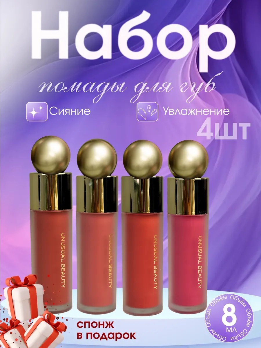 Набор помад для губ 4 шт+ спонж в подарок