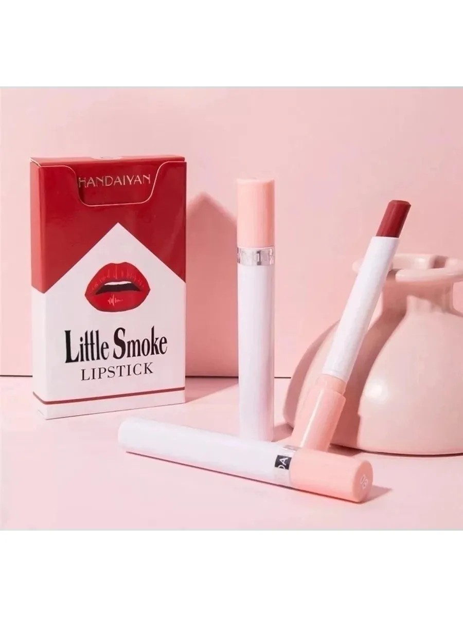 These stylish packaging contains four slim tubes. Each contains a long-lasting, velvety matte lipstick of a different color. The long-lasting tint maintains your favorite color throughout the day, and the velvety effect adds softness and charm. The matte shade of these lipsticks pairs perfectly with a variety of outfits, from a business suit to an evening gown. Nude lipsticks have become a staple in women's cosmetics, helping to quickly adjust the shape and color of your lips. The Little Smoke waterproof lipstick in a slim case captivates with its elegance. This velvet lipstick set makes a wonderful gift for your girlfriend on March 8th and February 14th. Any woman will appreciate matte lipsticks, which easily complement any look. This matte lipstick set fits easily into a small handbag. Long-lasting moisturizing lipsticks, pleasant matte lipsticks, should find a place in your cosmetics collection!