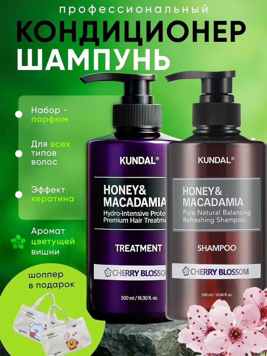 KUNDAL Кундал бессульфатный Шампунь для волос Cherry Blossom (аромат цветущей вишни) , 500 мл.