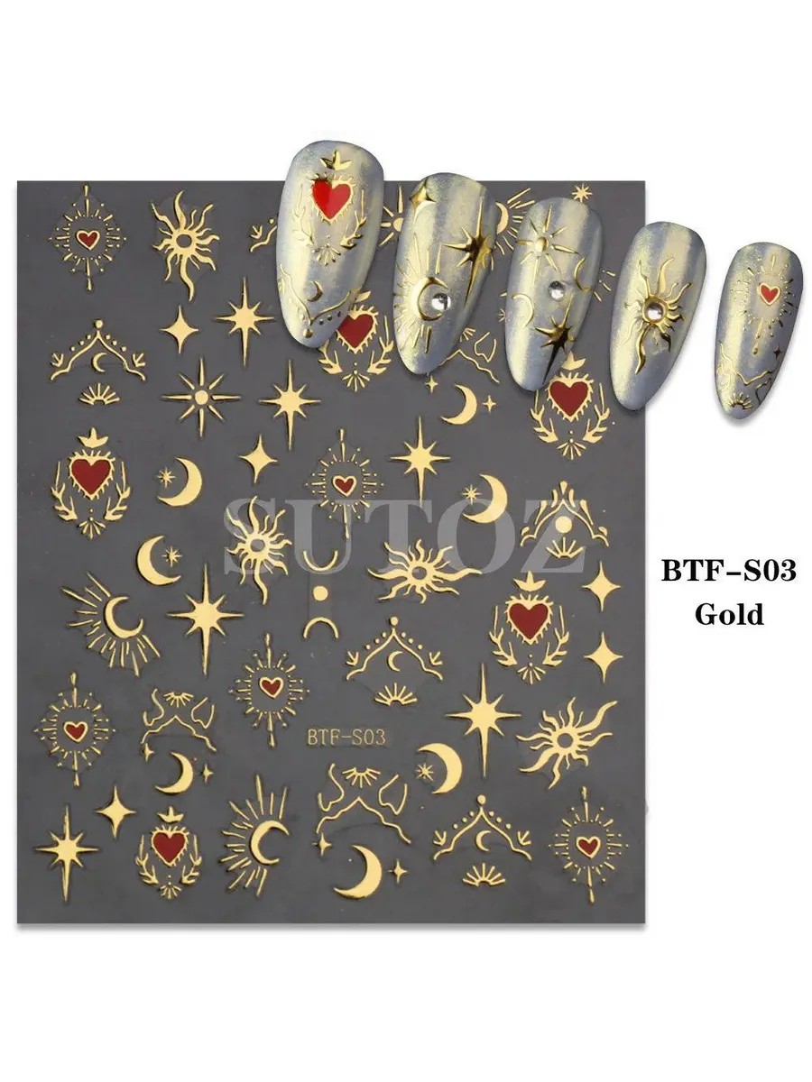 3D наклейки для ногтей на День Святого Валентина с золотой луной и бабочками