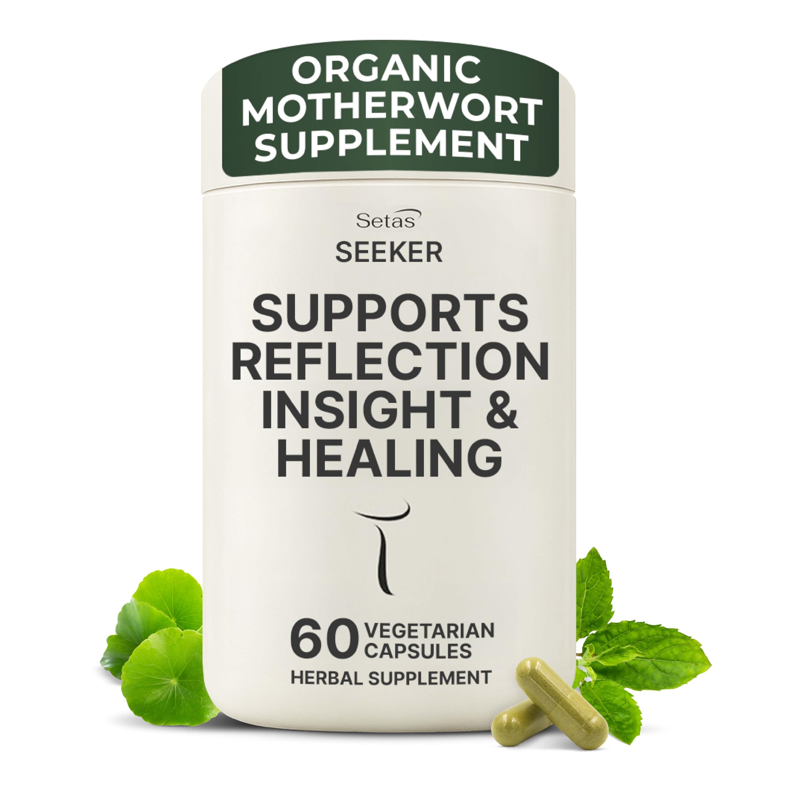 Setas Seeker Organic Motherwort Supplement | 60-Day Supply| Gotu Kola & Holy Basil for Emotional Balance Mindfulness and Personal Reflection | Emotional Clarity and Grounding | 60 Vegan Capsules