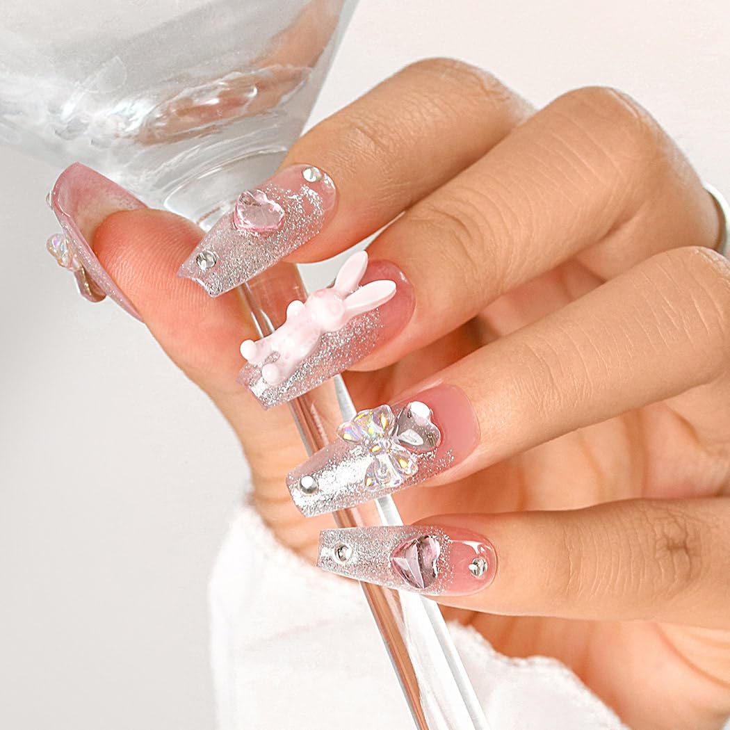 ?Packaging? 10 pieces of handmade press-on nails are equipped with a packaging box that contains manicure tools, including 24 pieces of joint liver, 1 nail file, 1 piece of alcohol, 1 wooden stick and a bottle of nail glue.If you have any questions about the product, please contact us in good time, we will contact you within 24 hours.?How to Apply? First, clean your nails.Second, choose incorrect nails in the corresponding size.Thirdly, glue your nails with jelly clever or glue, press for about 40 seconds to end wearing.It is recommended to use it with a jelly glue that cannot be injured and used repeatedly.?Applicable occasions? Suitable for different occasions such as office, dating, party, wedding, graduation, group photo, live broadcast, festival, Halloween, Christmas, etc., so that they are always charming.It is also very suitable as a gift for mother, wife, daughter, girlfriend, lover and so on.?Exquisites design? Pure handmade nails with exquisite design.Our long coffin handmade nails have designs such as 3D heart rhinestones and rabbits that have a much better feeling and appearance than machine nails.The carrying effect is like in a nail salon and it is cheaper.With a handmade manicure, you can use the services of a first -class manicure for less money without leaving the house.?High quality material? Made of high -quality acrylic material, environmentally friendly, good flexibility, not easy to break, strong durability, color right and waterproof.?Packaging? 10 Stück handgemachte Press-On-Nägel sind mit einer Verpackungsbox ausgestattet, die Maniküre-Tools enthält, einschließlich 24 Stück Geleekleber, 1 Nagelfeile, 1 Stück Alkoholwatte, 1 Holzstab und eine Flasche Nagelkleber. Wenn Sie irgendwelche Fragen über das Produkt haben, kontaktieren Sie uns bitte rechtzeitig, wir werden Sie innerhalb von 24 Stunden kontaktieren. ?How to Apply?First, reinigen Sie Ihre Nägel. Zweitens, wählen Sie falsche Nägel in der entsprechenden Größe. Drittens, kleben Sie Ihre Nägel mit Geleekleber oder Kleber, drücken Sie für etwa 40 Sekunden, um das Tragen zu beenden. Es wird empfohlen, es mit Geleekleber zu verwenden, der die Nägel nicht verletzt und wiederholt verwendet werden kann. ?Anwendbare Anlässe?Suitable für verschiedene Anlässe, wie Büro, Dating, Party, Hochzeit, Abschluss, Gruppenfoto, Live-Sendung, Festival, Halloween, Weihnachten, usw., so dass Sie immer charmant. Es ist auch sehr geeignet als Geschenk für Mutter, Frau, Tochter, Freundin, Liebhaber und so weiter. ?Exquisites Design?Pure handgemachte Nägel mit exquisitem Design. Unsere langen Sarg handgemachte Nägel verfügen über Designs wie 3D Herz Strass und Kaninchen, die ein viel besseres Gefühl und Aussehen als maschinelle Nägel haben. Der Trageeffekt ist wie in einem Nagelstudio, und es ist kostengünstiger. Mit einer handgefertigten Maniküre können Sie die Dienste einer erstklassigen Maniküre für weniger Geld in Anspruch nehmen, ohne das Haus zu verlassen. ?Hochwertiges Material?Hergestellt aus hochwertigem Acrylmaterial, umweltfreundlich, gute Flexibilität, nicht leicht zu brechen, starke Haltbarkeit, farbecht und wasserdicht.Sethexy Langer Sarg Rosa Falsche Nägel Handgefertigt Strasssteine Glitzer Luxus Falsche Nägel 3D-Kristall-Liebesherz Schleife Kaninchen Acryl Nägel zum Aufkleben Abnehmbar für Frauen und Mädchen