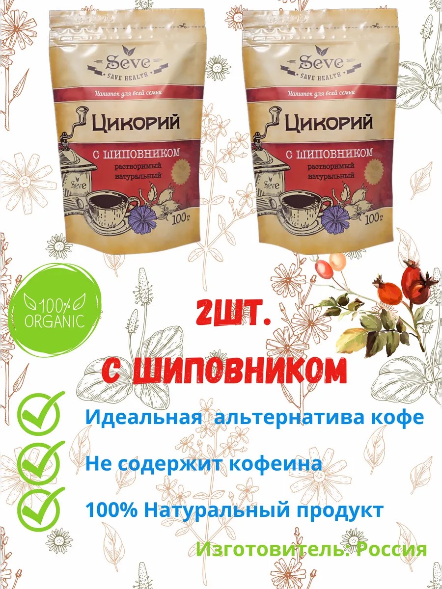 Растворимый 100% цикорий порошок 100гр с шиповником 2 шт