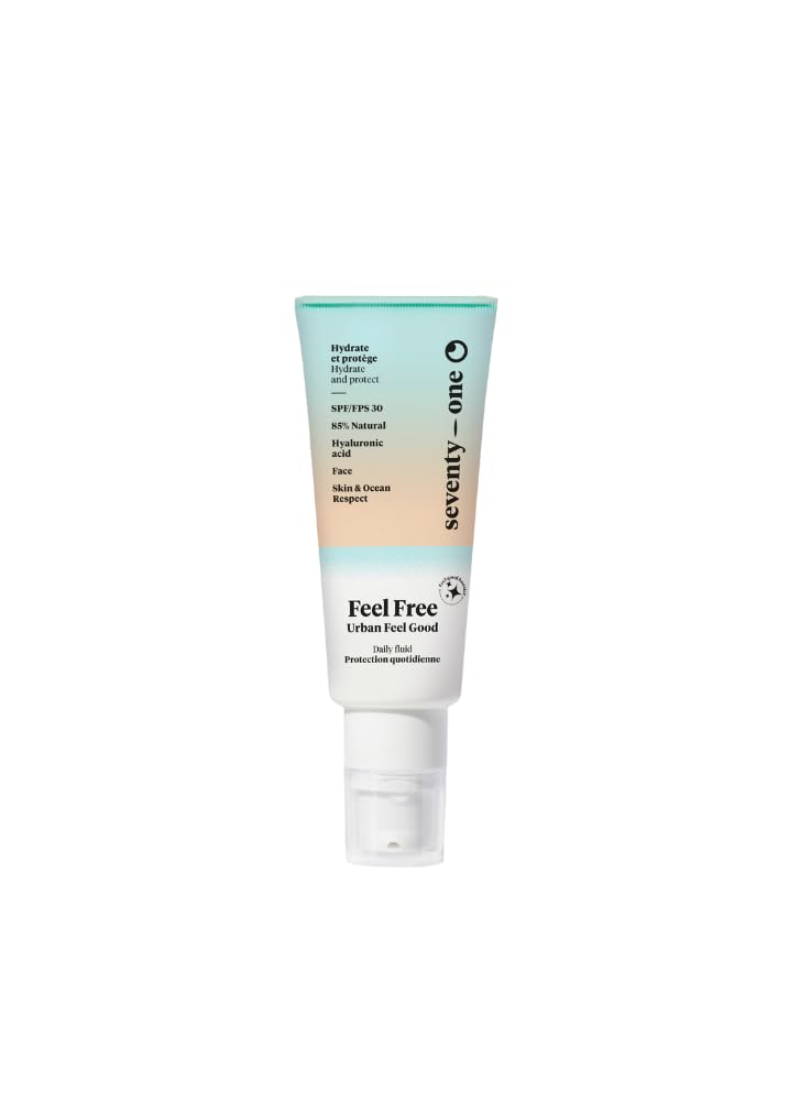 SeventyOne Percent | Feel Free | Multi-Protective & Moisturizing Face Care | Daily Protection | SPF 30 | Hyaluronic Acid & Prebiotic | 85% Natural Vegan | Made in France | 40 ml