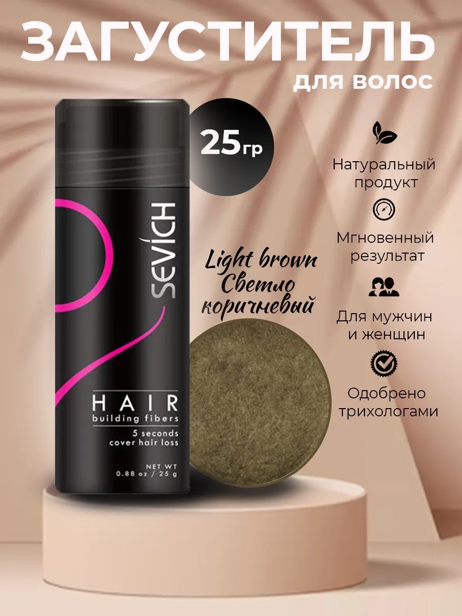 Загуститель для волос и бороды – секрет вашей красивой и объемной прически. Профессиональное средство Sevich станет отличным решением для мужчин и женщин с сединой, тонкими и редкими локонами или залысинами. Микроскопические волокна пудры из натуральных органических компонентов закрепляются на волосах и держаться весь день, не осыпаясь. Они добавляют объем, который смотрится максимально натурально под естественным и искусственным освещением. В составе загустителя премиальный и полностью безопасный для волос и кожи головы кератин. Устойчивый результат остается на волосах до следующего мытья головы. Это отличный выбор для маскировки проплешин и зон, склонных к облысению. Смываемый косметический состав легко и быстро наносится. Он прост в применении и представлен в большом количестве цветов и оттенков. Подобрать подходящую пудру – загуститель смогут обладатели черных и темно – коричневых, теплых и холодных темных, средних и светло - русых волос. Отлично маскирующее недостатки средство подойдет для пожилого человека, взрослого мужчины и женщины, девушки и парня. После нанесения оно добавляет цвета и пышности корням, скрывает отросшую седину и маскирует пробор. Это также отличный выбор для придания плотности и густоты мужской бороде. При распылении сухой пудры достигается идеальный естественный эффект камуфляжа. Средство станет отличным выбором для использования в домашних условиях или в парикмахерских и салонах красоты. Оно фиксируется на волосах в течение нескольких секунд. Состав поставляется в удобном флаконе с крышкой. Масса продукта составляет 25 грамм. Это отличный выбор для ухода за женскими и мужскими волосами. Маскирующее средство подойдет тем, кто столкнулся с проблемой алопеции или выпадения волос. У нас есть акции и распродажи, вы можете купить наши товары в подарок со скидкой!
