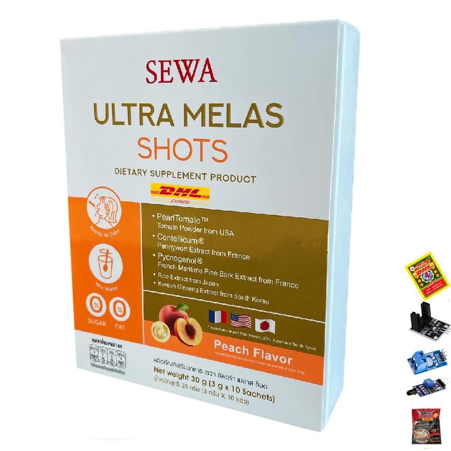 Sewa Ultra Melasshot: 10 Sachets of 30g. Advanced Moisture Nourish for Smooth and Innovative Beauty Skin Introducing Sewa Ultra Melasshot – Your Secret to Beauty Skin! Unveil a new level of beauty with our innovative Moisture Nourish Smooth Beauty Skin solution. Each box contains 10 sachets, each packed with 30g of skin-nourishing goodness. ? Boost your confidence with noticeably smoother, softer, and moisturized skin. ? Formulated with a perfect blend of active ingredients like L-Glutathione, Korean Ginseng Extract, White Jelly Mushroom Extract, and Pearl Tomato Powder. ? Experience the luxury of instant absorption with the appearance of small granules, ensuring quick and effective results. ? Enjoy the delightful taste, appealing color, and pleasant aroma of our Melasshot, making it a joy to incorporate into your daily skincare routine. ? Conveniently packaged in 30g sachets, perfect for on-the-go beauty enthusiasts. ✓ Content: 10 Sachets/Box (30g). ✓ Active Ingredients: L-Glutathione, Korean Ginseng Extract, White Jelly Mushroom Extract, Pearl Tomato Powder. ✓ Notification Number 73-1-00154-5-0160. ✓ Directions for Use: Simply apply 1-2 sachets per day for optimal results. Witness the transformation as our Moisture Nourish Smooth Beauty Skin becomes an essential part of your beauty regimen. Elevate your skincare routine with Sewa Ultra Melasshot – because your skin deserves the very best!? Formulated with a perfect blend of active ingredients like L-Glutathione, Korean Ginseng Extract, White Jelly Mushroom Extract, and Pearl Tomato Powder. ? Boost your confidence with noticeably smoother, softer, and moisturized skin. ? Experience the luxury of instant absorption with the appearance of small granules, ensuring quick and effective results. ? Conveniently packaged in 30g sachets, perfect for on-the-go beauty enthusiasts. ? Enjoy the delightful taste, appealing color, and pleasant aroma of our Melasshot, making it a joy to incorporate into your daily skincare routine.