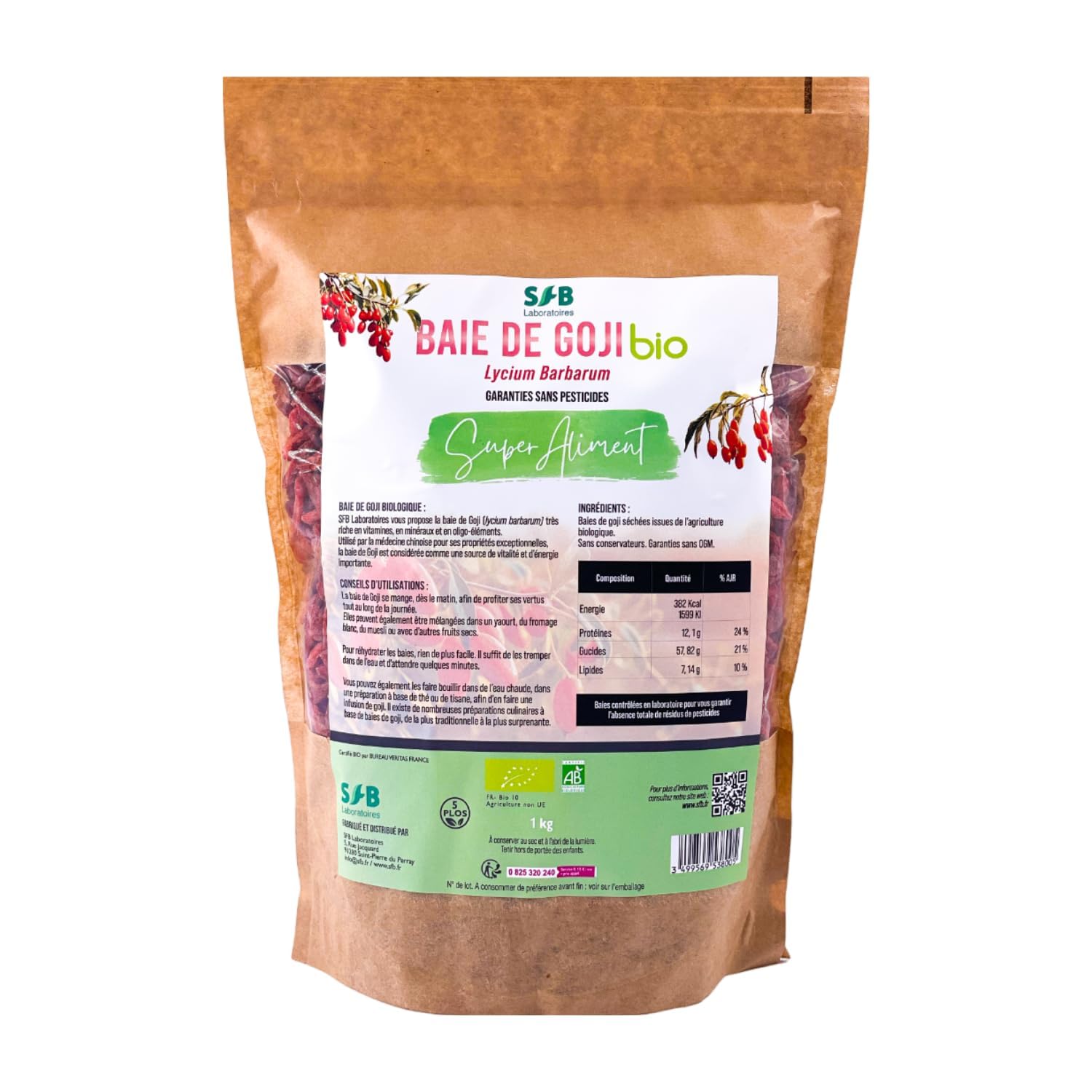 Baies de Goji Bio 1kg - SFB Laboratoires - Garanties sans pesticides