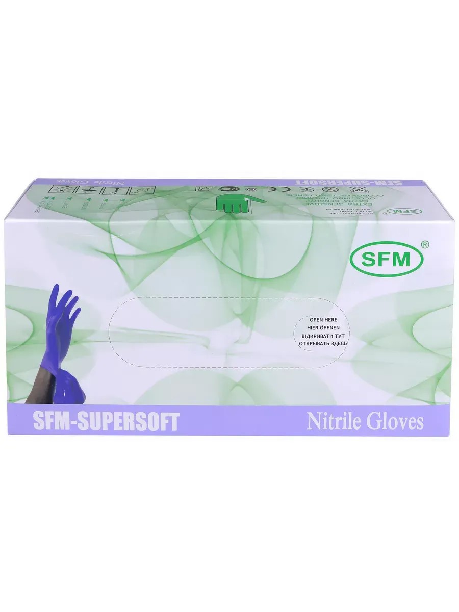 Supersoft Gloves (SFM) Nitrile, Powder-Free, Size M, 200 pcs. Supersoft Gloves (SFM) Nitrile, Powder-Free, Size M, 200 pcs. Supersoft Gloves (SFM) Nitrile, Powder-Free, Size M, 200 pcs. Non-sterile nitrile examination gloves are designed to provide additional protection for patients and users during medical examinations and check-ups in a veterinary clinic. Inner surface treatment - chlorination. Material - nitrile; Flat shape (not divided into right and left hands); Textured, micro-rough surface on the fingers; Powder-free; Non-sterile; Cuff - from 240 mm; Packaging: 100 pairs.