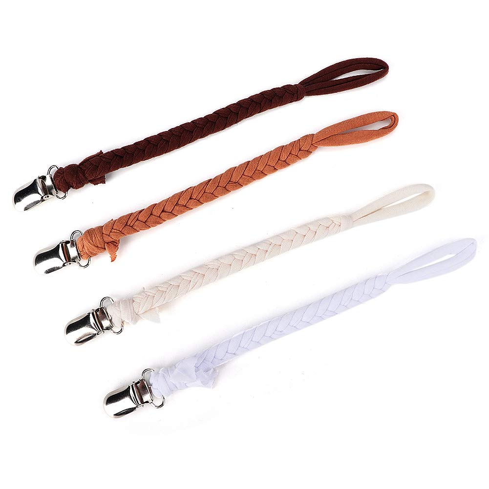Specifications: Material: fabric stainless steel clip. Function: anti-loss. Quantity: 4 pieces. Size: approx. 24 x 2.5 cm. Scope of delivery: 4 x pacifier clip.