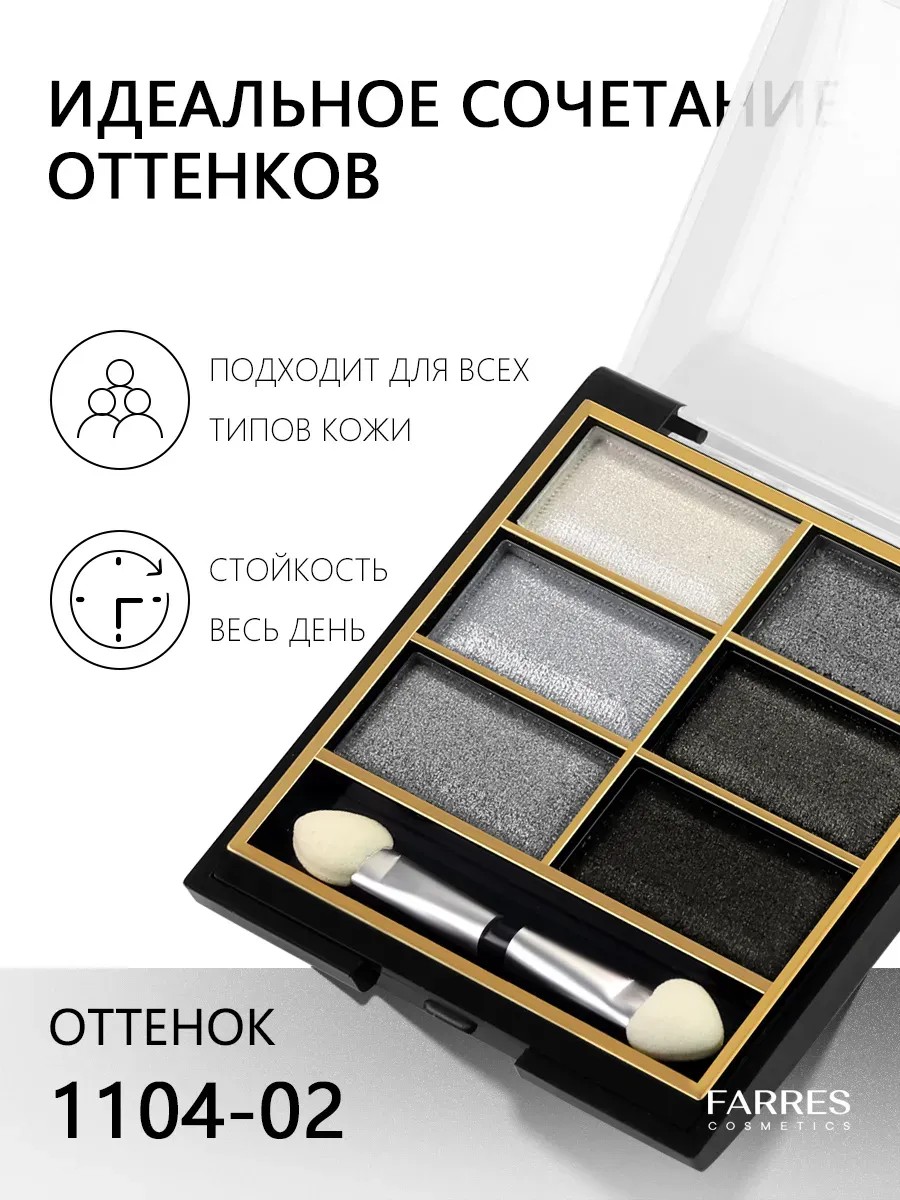 Универсальная палетка теней для век FARRES — идеальный способ подчеркнуть красоту любого образа! Широкий выбор цветов, включая яркие, мерцающие и нюдовые оттенки, сделает ваш образ незабываемым. В набор входят 6 теней для век на разных основах с мерцающими перламутровыми частичками, блестками и светоотражающими пигментами в удобных основах. Они легко создадут стойкий, упругий и блестящий эффект. Красота - Этот продукт идеально подходит для создания и придания формы любому, даже профессиональному макияжу глаз. Декоративная косметика легко наносится с помощью кистей и аппликаторов и служит завершающим штрихом для идеального контурирования и подводки глаз. Это подарочный набор для мамы, подруги, любимой девушки и сестры, дочери, жены, коллеги или любой близкой женщины, который можно преподнести на день рождения, годовщину свадьбы, юбилей и любой другой праздник без исключения, даже без особого повода, чтобы выразить свое внимание и заботу любимому человеку. Красота – этот продукт сделает ваш макияж мягким, гладким и по-настоящему роскошным. Благодаря стойкому, насыщенному цвету прекрасный вид сохраняется в течение всего дня. Атласные тени для век с мерцанием создают потрясающий результат, который удовлетворит даже самого взыскательного визажиста. Гипоаллергенные средства по уходу идеально подходят для взрослых женщин и девочек-подростков. Таким образом, поклонники глубоких черных и светло-белых, красных и персиковых, серебристых и синих, а также коричневых оттенков смогут найти для себя подходящий вариант. Все, что вам нужно сделать, это выбрать подходящий пакет. Тени для век на высококачественной, цветной основе придадут женским глазам особое сияние и красоту. Их можно смело использовать для создания как повседневного, так и праздничного макияжа, очень удобны и просты в использовании. Легкая, простая в нанесении декоративная косметика позволяет добиться потрясающих результатов в домашних условиях. FARRES станет отличным подарком на Новый год!