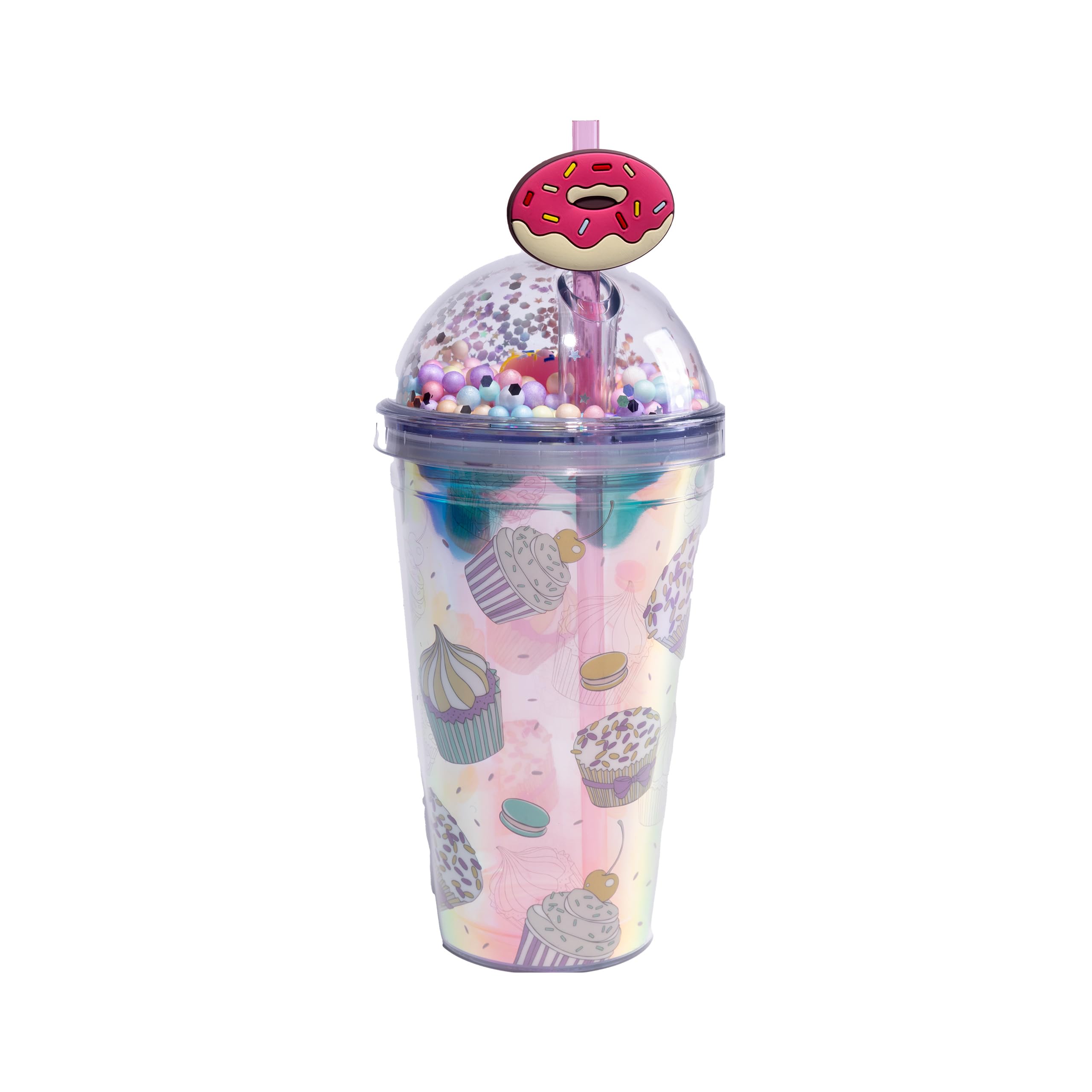 Cupcakes. Cup with lid and straw. Reusable cup. Double-layered, multicolored and transparent. Shaker. Leak-proof screw-on lid. Original and unique gift.