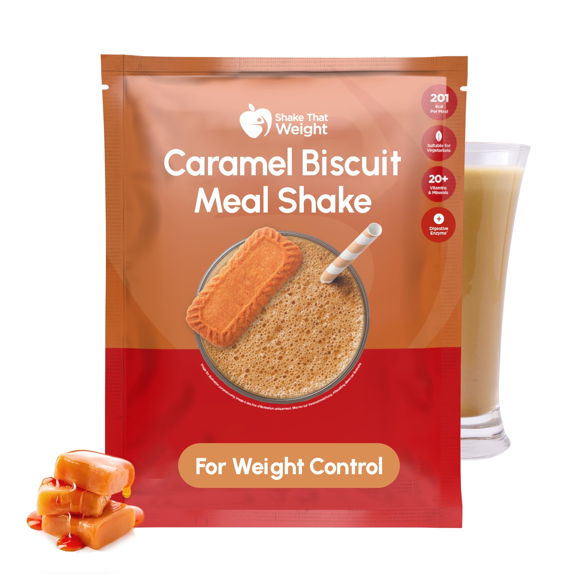 Transform your meals with this innovative caramel meal replacement shake. Simply mix with water to create a satisfying meal that provides 18g of protein and a comprehensive blend of over 20 vitamins and minerals. Perfect for those on a calorie-controlled diet, each sachet offers a complete meal replacement solution with no artificial sweeteners. The delicious caramel biscuit flavor makes sticking to your eating goals more enjoyable. This vegetarian shake is fortified with fiber to help you feel full for longer. Each pack contains 10 convenient sachets – just add 250ml of cold water to prepare. Please note: This product is intended for healthy adults over the age of 16 and should not be used by pregnant, breastfeeding, or otherwise unwell women. As with any dietary change, it is advisable to consult your doctor before starting a meal replacement program. INGREDIENTS Maltodextrin, milk proteins (emulsifier: lecithin), skimmed milk powder, chicory inulin, soybean oil, minerals (potassium carbonate, magnesium carbonate, ferrous fumarate , zinc oxide , potassium iodide , sodium selenite , manganese sulfate , cupric sulfate ), colors: natural caramel and beta-carotene, flavorings (contains: milk), spices (cinnamon, ginger), salt, thickeners: xanthan and guar gums, vitamins (C, E, B9, B3, A, B5, B8, B12, D3, B6, K, B1, B2) , sweetener: steviol glycosides from stevia, emulsifier: soy lecithins, antioxidants: fatty acid esters of asters, corbic acid and alpha-tocopherol. Made on equipment that processes: seafood fish, celery, egg, gluten, nuts INSTRUCTIONS 1. Pour 250 ml of cold water into a shaker. 2. Add the contents of the sachet to the shaker. 3. Shake until completely dissolved. 4. Enjoy! See moreShake That Weight - Caramel Biscuit substitut de repas Shake, riche en protéines 18g, végétarien, mélanger avec de l'eau, paquet de 10. plan de remplacement de repas pour perte de poids - régime très Biscuit au caramel 55 g (Pack of 10)DESCRIPTION DU PRODUIT DESCRIPTION DU PRODUIT Transformez vos repas avec ce shaker innovant de remplacement de repas au caramel. Mélangez simplement avec de l'eau pour créer un repas satisfaisant qui fournit 18 g de protéines et un mélange complet de plus de 20 vitamines et minéraux. Parfait pour ceux qui suivent un régime contrôlé en calories, chaque sachet offre une solution complète de remplacement de repas sans édulcorants artificiels. La délicieuse saveur de biscuit au caramel rend le respect de vos objectifs alimentaires plus agréable. Ce shake végétarien est enrichi en fibres pour vous aider à vous sentir rassasié plus longtemps. Chaque lot contient 10 sachets pratiques – il suffit d'ajouter 250 ml d'eau froide pour préparer. Remarque : ce produit est destiné aux adultes en bonne santé de plus de 16 ans et ne doit pas être utilisé par les femmes enceintes, allaitantes ou en mauvaise santé. Comme pour tout changement de régime alimentaire, il est conseillé de consulter votre médecin généraliste avant de commencer un programme de remplacement de repas. INGRÉDIENTS Maltodextrine, protéines de lait (émulsifiant : lécithine), lait écrémé en poudre, inuline de chicorée, huile de soja, minéraux (carbonate de potassium, carbonate de magnésium, fumarate ferreux , oxyde de zinc , iodure de potassium , sélénite de sodium , sulfate de manganèse , sulfate cuivrique ), couleurs : caramel nature et bêta-bêta- caroten, saveur ings (contient : lait), épices (cannelle, gingembre), sel, épaississants : gommes xanthane et guar, vitamines (C, E, B9, B3, A, B5, B8, B12, D3, B6, K, B1, B2) , édulcorant : glycosides de stéviol de stévia, émulsifiant : lécithines de soja, antioxydants : gras esters acides d'asters acide corbique et alpha-tocophérol. Fabriqué sur des équipements qui traitent : fruits de mer poisson, céleri, œuf, gluten, noix MODE D'EMPLOI 1. Versez 250 ml d'eau froide dans un shaker. 2. Ajouter le contenu du sachet dans le shaker. 3. Agiter jusqu'à dissolution complète. 4. Profitez-en ! Voir plus