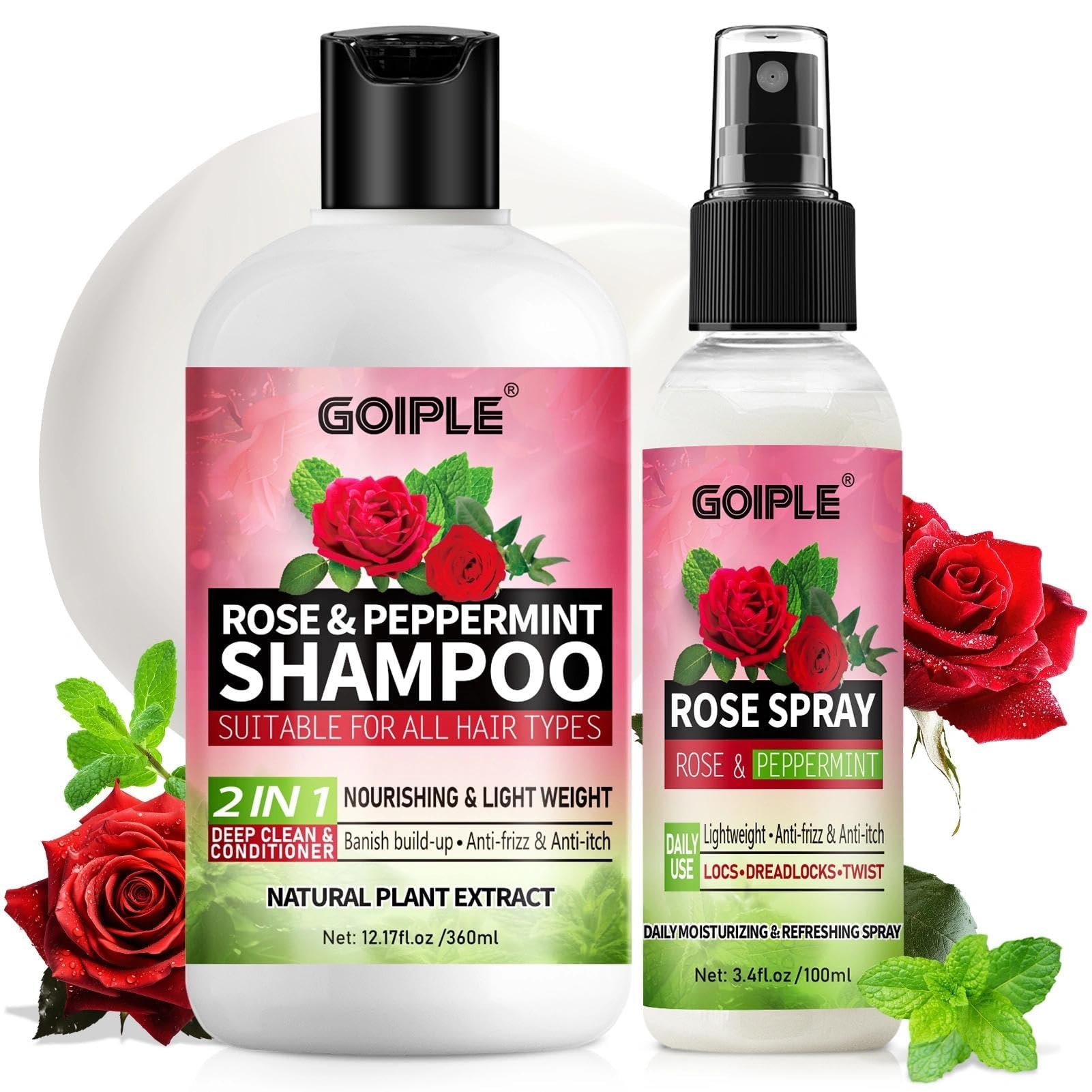 Shampoing et Après-Shampoing pour Tous Types de Dreadlocks, Tresses et Torsades, à L'eau de Rose et à la Menthe, Shampoing pour Cheveux Bouclés et Spray, Shampooing Rose Hydratant 2 PCS
