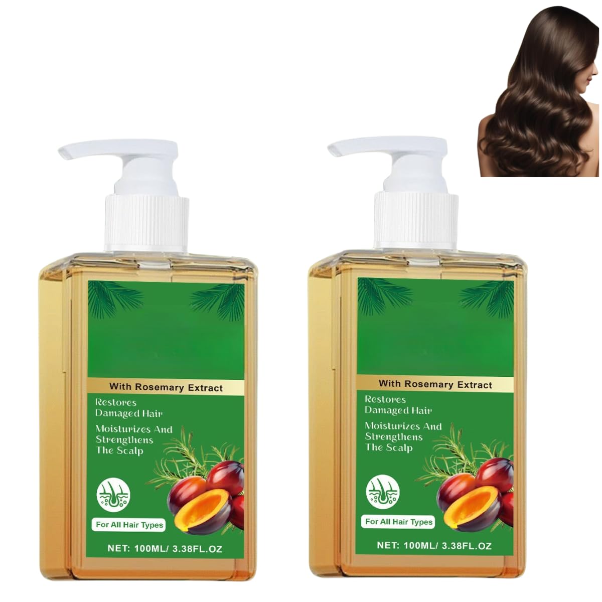 Shampoing rafraîchissant à l'huile de romarin, nourrit les cheveux, les rend lisses et volumineux, convient à tous les types de cheveux. 2PCS