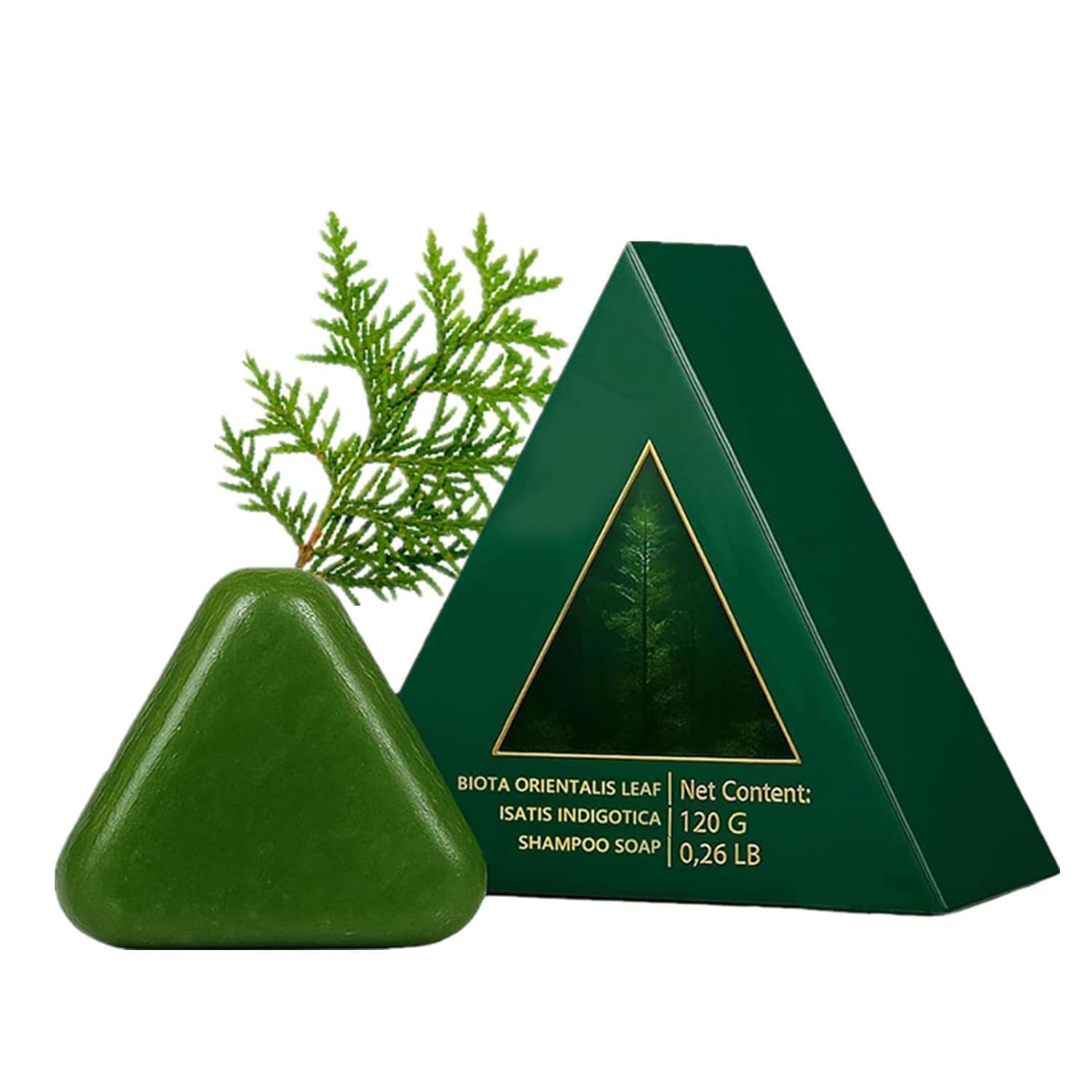 Shampoing solide Nature Triangle, Shampoing solide naturel à l'herbe d'Usman et à l'eau de riz gluant, apaise et renforce les cheveux, favorise la pousse des cheveux 1pcs