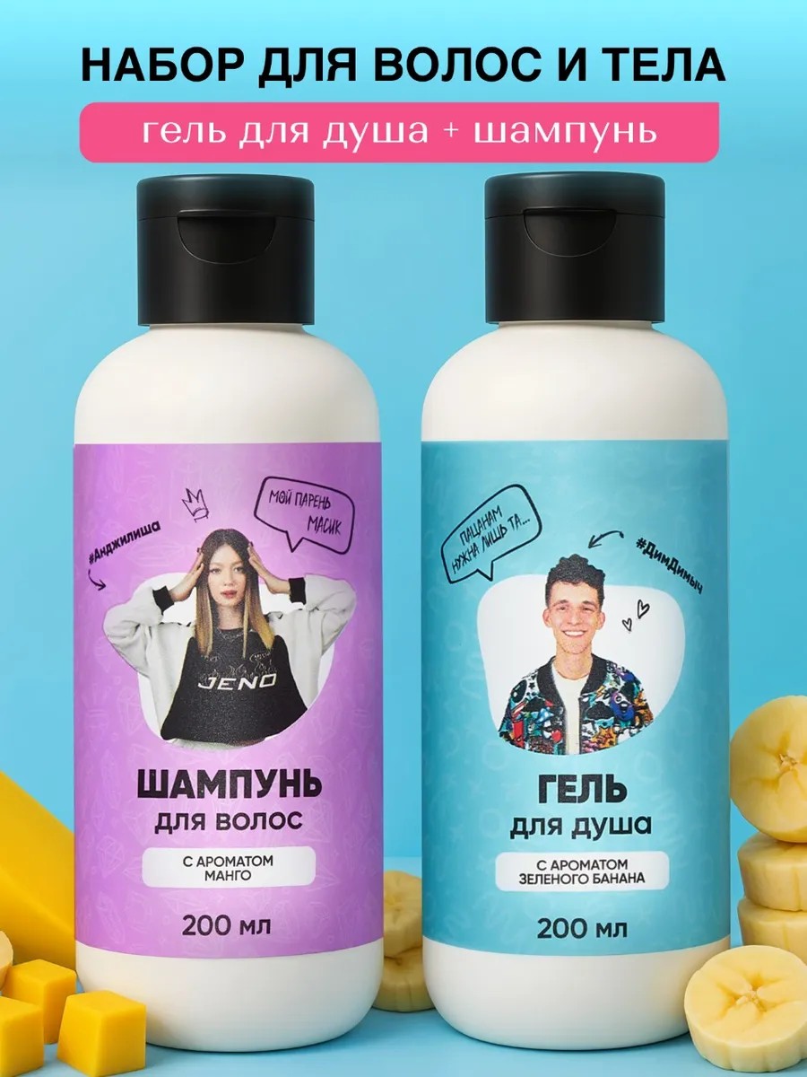 Набор от блоггеров Дим Димыча (Дима Сивчик) и Анджилиши шампунь и гель для душа с ароматами манго и банана идеален для активных парней и девушек. Набор косметики для детей и подростков от sivchik и anjilisha погрузит тебя в атмосферу уюта, "смоет" напряженность и усталость, после тяжелого дня, наполненного учебой, тренировками и волнительными моментами.
