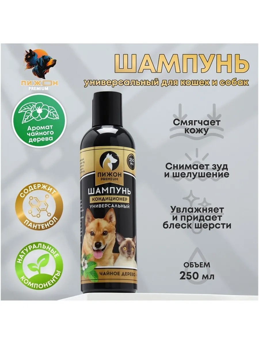 Цена указана за 2 шт. Шампунь-кондиционер "Пижон Premium" для кошек и собак с маслом чайного дерева и мятой, 250 мл Шампунь-кондиционер "Пижон Premium" предназначен для ухода за кожно-волосяным покровом кошек и собак всех пород