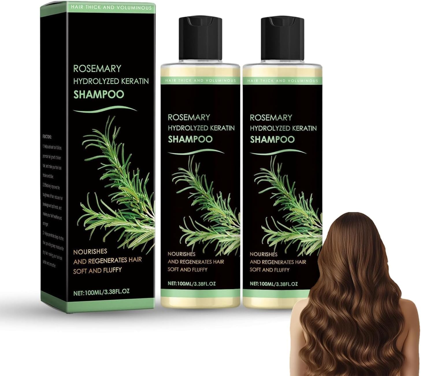 Shampooing au Romarin avec Kératine Hydrolysée - Romarin Kératine Hydrolysée Shampooing, Volume nettoyant et hydratant en profondeur, soin quotidien léger et volumisant, Format Voyage, 100ml–Lot de 2