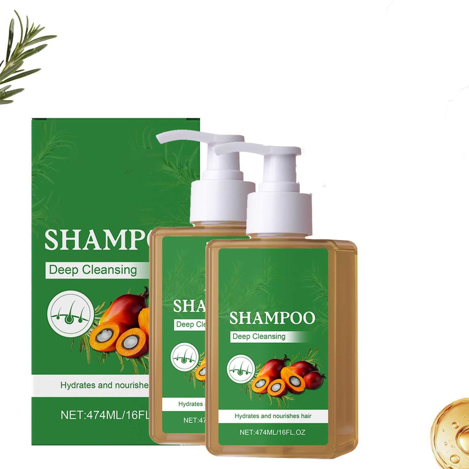 Shampooing à base de plantes pour la croissance des cheveux, traitement à l'extrait de romarin pour réparer les cheveux abîmés, éliminer les pointes fourchues pour des cheveux plus denses et plus 2 pièces.