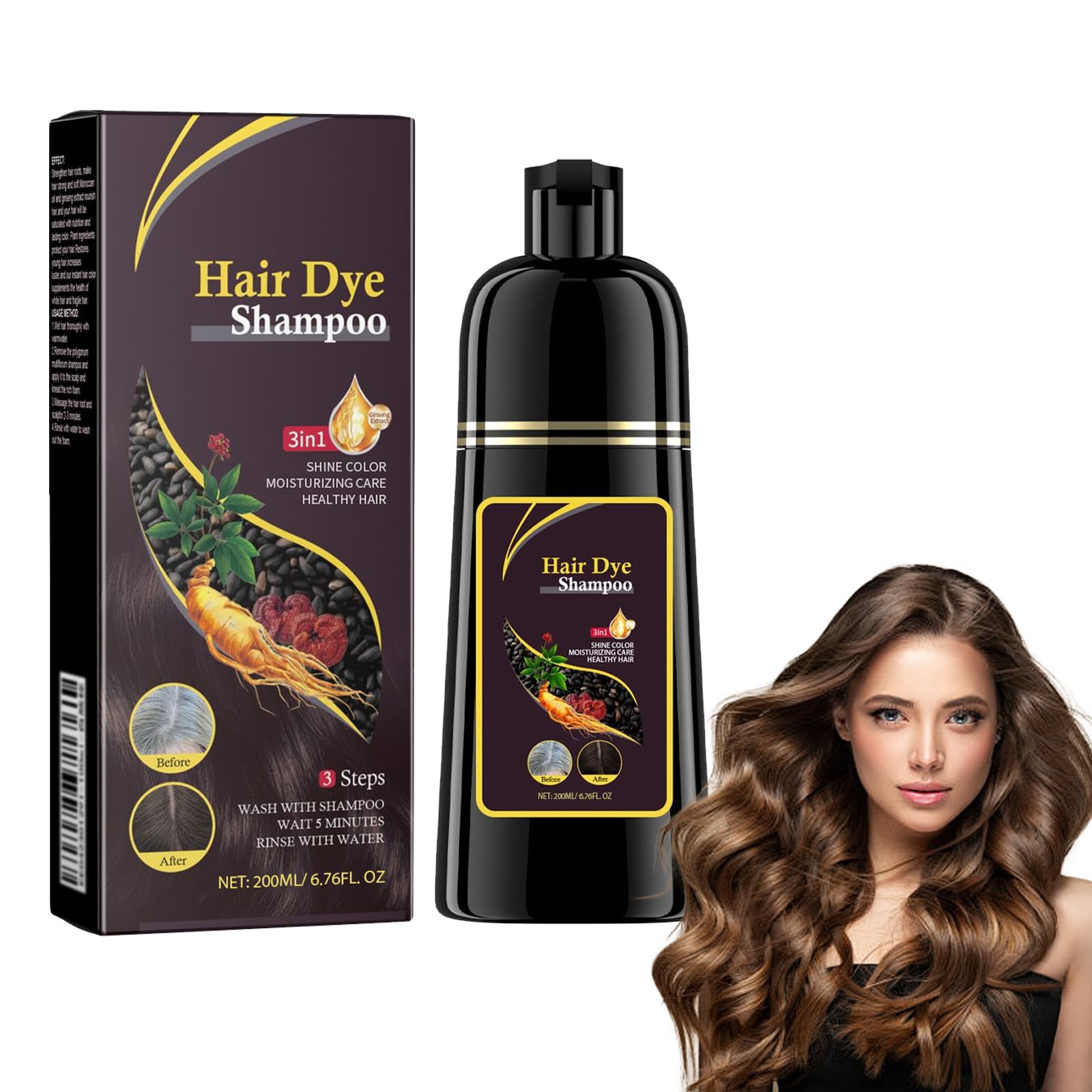 Instructions for use: Wet your hair, apply, leave on for 10-15 minutes for the coloring effect, or use as a regular shampoo to cleanse and condition.Best Gift: This color-depositing shampoo for men and women makes the perfect gift for parents, loved ones, and friends. Using our shampoo can make your hair shinier, healthier, and younger-looking. Covers Gray Hair: Suitable for all hair types, including coarse, fine, and normal hair, as well as straight or curly hair textures. Effectively covers gray hair, so you no longer have to worry about it. Nourishing Hair Care: Our color-depositing shampoo contains natural and effective ingredients that provide hair with the nourishment it needs. It not only cleanses the hair but also cares for the scalp, repairs damaged hair, and makes hair strong and supple. 3-in-1 Color-Depositing Shampoo: Unlike traditional hair dyes, it can be used not only as a hair color (the instant shampoo covers gray hair in 10-15 minutes), but also as a shampoo and conditioner. Paraben-free and free of harsh chemicals. Gentle and natural This ingredient: The gentle natural extract of He Shou Wu strengthens the hair fiber from within and the ginseng extract deeply nourishes the scalp thanks to its effective repairing properties, leaving hair shiny, smooth and silky.Mode d'emploi Humidifiez vos cheveux, appliquez, laissez poser pendant 10-15 minutes pour l'effet de coloration, ou utilisez comme un shampooing régulier pour nettoyer et conditionner.Meilleur cadeau : le shampooing colorant pour hommes et femmes est le cadeau idéal pour les parents, les proches et les amis. L'utilisation de notre shampooing peut rendre vos cheveux plus brillants, plus sains et plus jeunes. Couvrir les cheveux gris : convient à tous les types de cheveux, y compris les cheveux rêches, fins et normaux, ainsi que les structures de cheveux raides ou bouclés. Couvre efficacement les cheveux blancs, pour que vous n'en souffriez plus. Soins capillaires nutritionnels : Notre shampooing pour cheveux colorés contient des ingrédients naturels et efficaces qui apportent aux cheveux la nutrition dont ils ont besoin. Il ne se contente pas de nettoyer les cheveux, il prend également soin du cuir chevelu, répare les cheveux abîmés et rend les cheveux forts et souples. Shampooing colorant 3 en 1 : contrairement aux colorations traditionnelles, il peut être utilisé non seulement comme coloration (le shampooing instantané couvre les cheveux gris en 10 à 15 minutes), mais aussi comme shampooing et après-shampooing. Sans parabène et sans produits chimiques agressifs. Doux et naturel Cet ingrédient : L'extrait naturel et doux de He Shou Wu renforce la fibre capillaire de l'intérieur et l'extrait de ginseng nourrit en profondeur le cuir chevelu grâce à ses propriétés réparatrices efficaces, laissant les cheveux brillants, lisses et soyeux.Shampooing pour Cheveux Colores, 3 en 1, Hydratation, Nettoyant et Reparateur, 200ml, Brun, Hair2