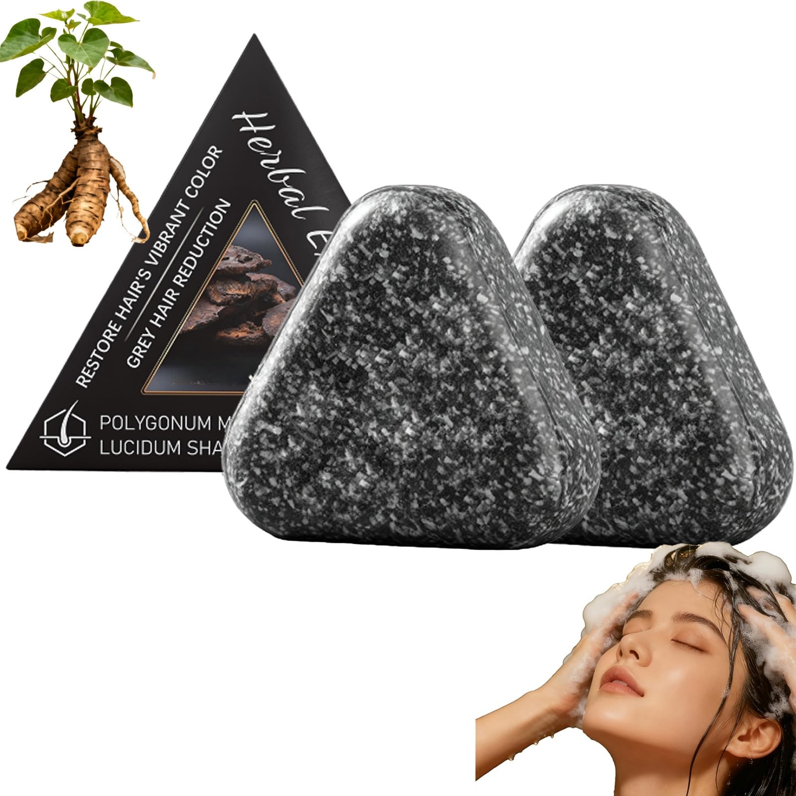 Shampooing triangulaire, shampooing de renforcement et de réparation, shampooing aux herbes Polygonum, savon noircissant pour cheveux gris, barre nourrissante, hydratante et adoucissante (2 pièces) 2 pièces.