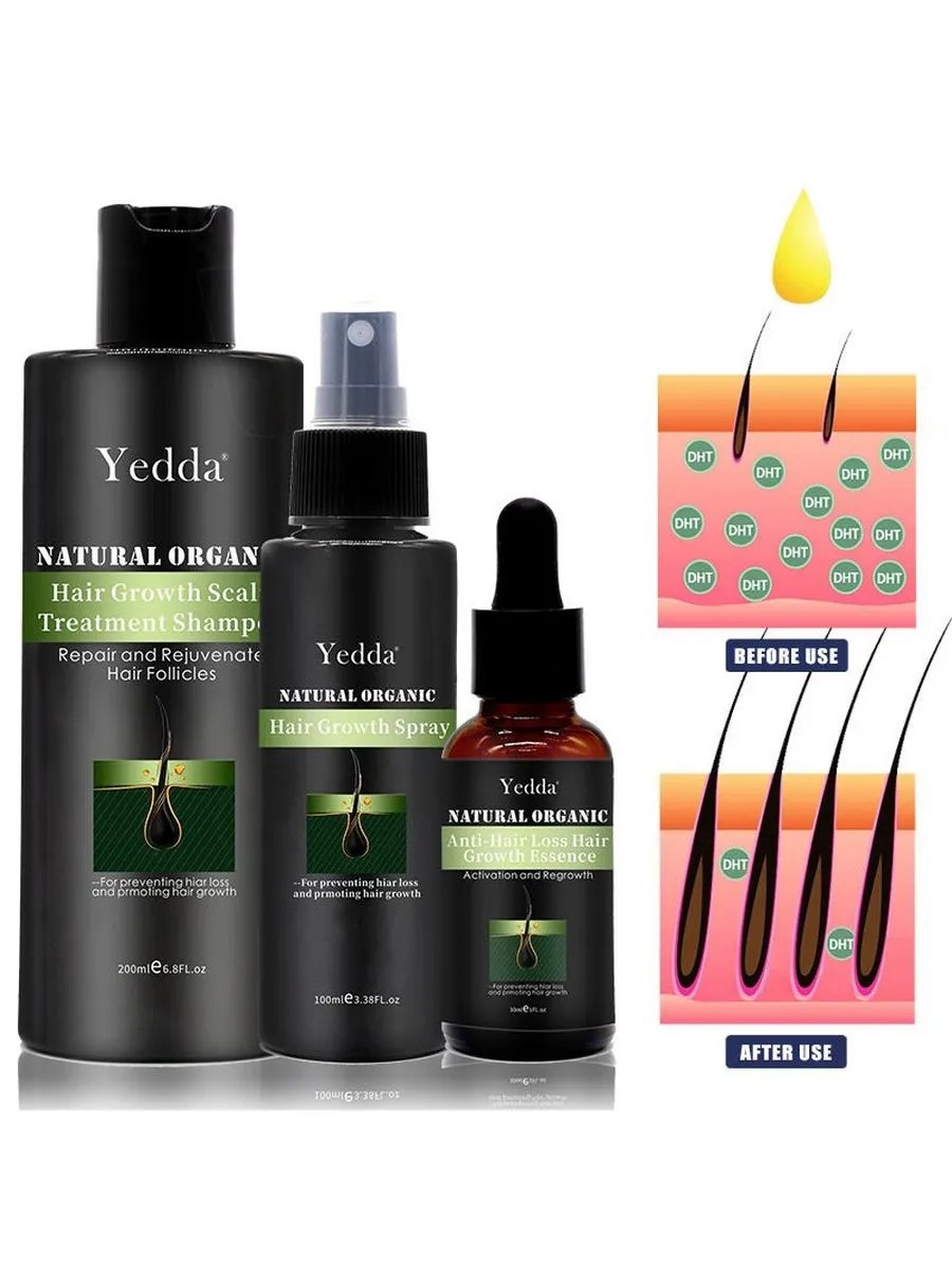 Это профессиональный набор средств для борьбы с выпадением и стимуляции роста волос, идеально подойдет как мужчинам, так и женщинам, желающим укрепить свои локоны и сохранить их здоровье. В него входит специальный шампунь, созданный на основе натуральных, веганских и травяных масел, содержащий почти 100% натуральных ингредиентов. Такой шампунь помогает усилить кровообращение, стимулирует обновление клеток и улучшает питание корней волос, благодаря чему "пробуждаются" спящие волосяные луковицы и предотвращается выпадение. В наборе также есть масло, насыщенное антиоксидантами и витаминами, которое защищает волосы от вредного воздействия окружающей среды, например, загрязнений и ультрафиолетовых лучей. Специальный спрей способствует глубокому увлажнению и укреплению корней, делая волосы более крепкими, блестящими и здоровыми. Необходимо наносить его на влажные волосы после мытья — немного помассировать и затем не смывать, чтобы поддерживать эффект. Всё средство подходит для ежедневного использования и поможет вернуть волосам силу, объем и сияние.