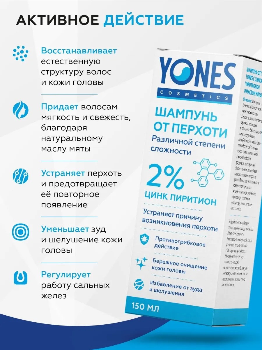 Шампунь для борьбы с перхотью, содержащий цинк, помогает нормализовать функцию сальных желез кожи головы, избавиться от перхоти, корочек, цветного и отрубевидного лишая, себореи и псориаза. Его ухаживающие компоненты делают волосы здоровыми и ухоженными. Цинк пиритион, имеющий противогрибковые свойства, эффективно борется со сухой и жирной себореей. Шампунь также уменьшает шелушение и зуд, помогает нормализовать работу сальных желез, делая кожу головы здоровой.