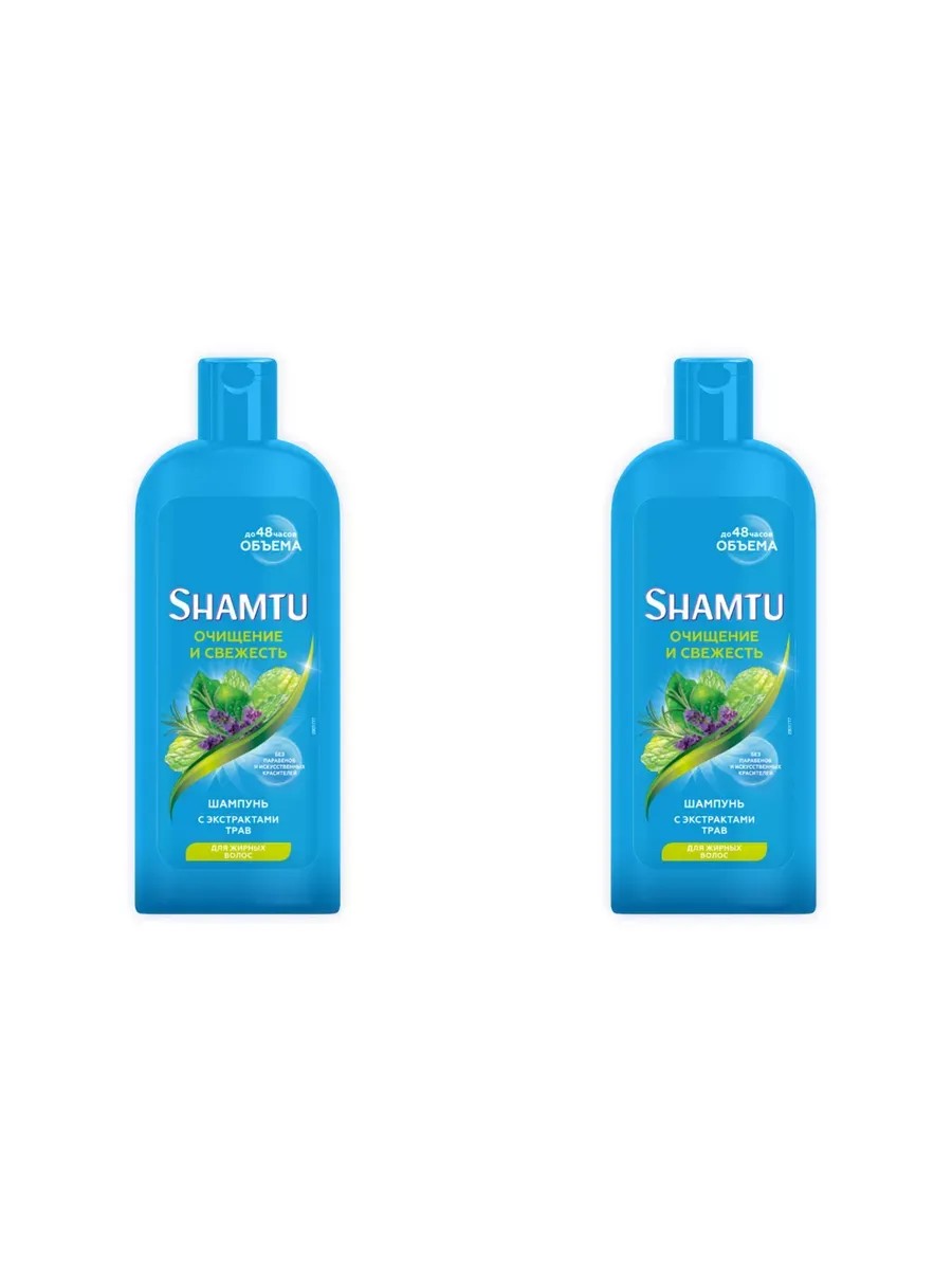 Shamtu, шампунь для волос, Глубокое очищение и свежесть, с экстрактами трав, 300 мл, в комплекте 2 шт.