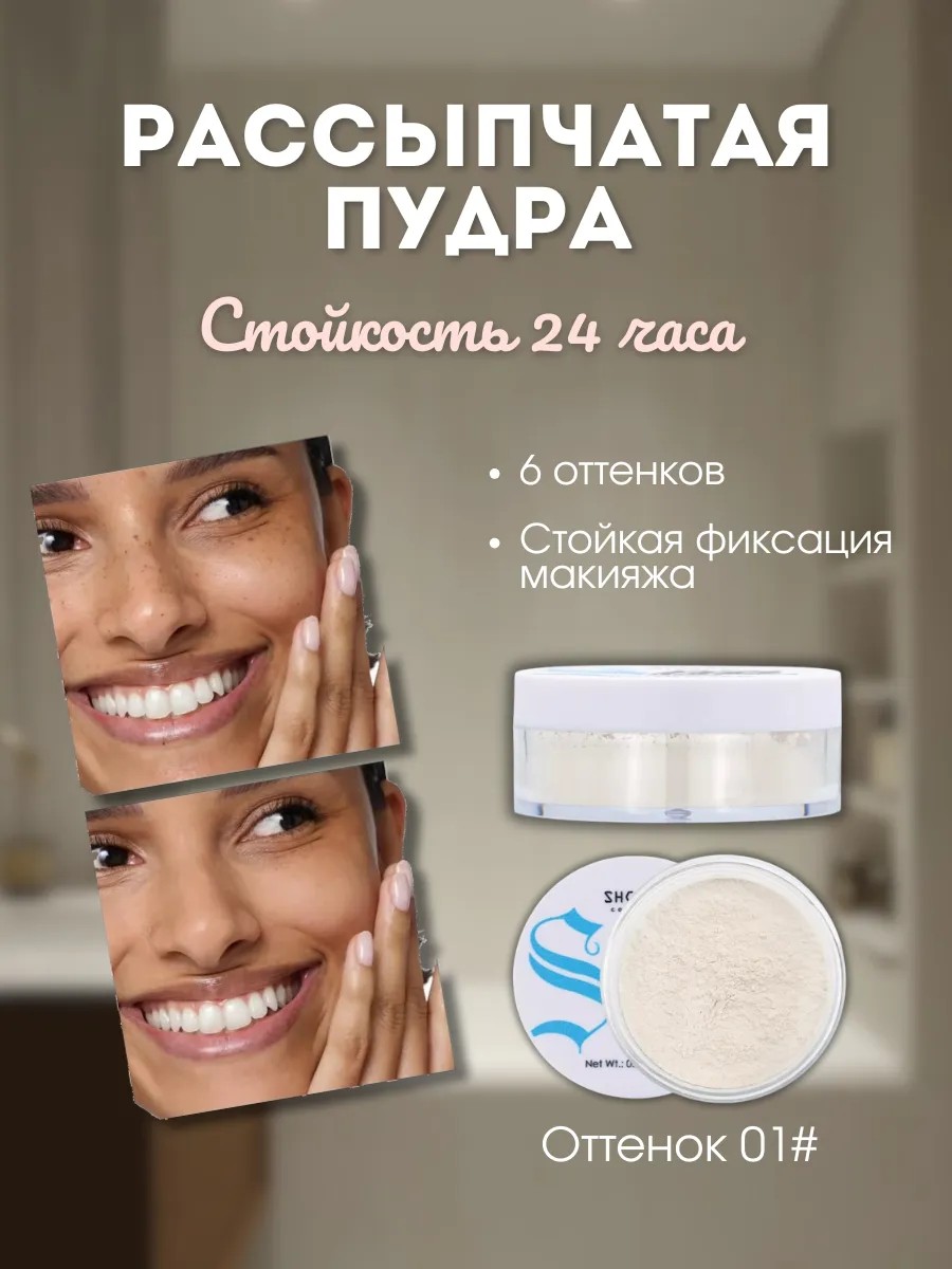 Пудра_SHCOETY- Минеральная рассыпчатая пудра бесцветная Make Up Mineral Powder - профессиональная косметика для макияжа с Photoshop - эффектом.