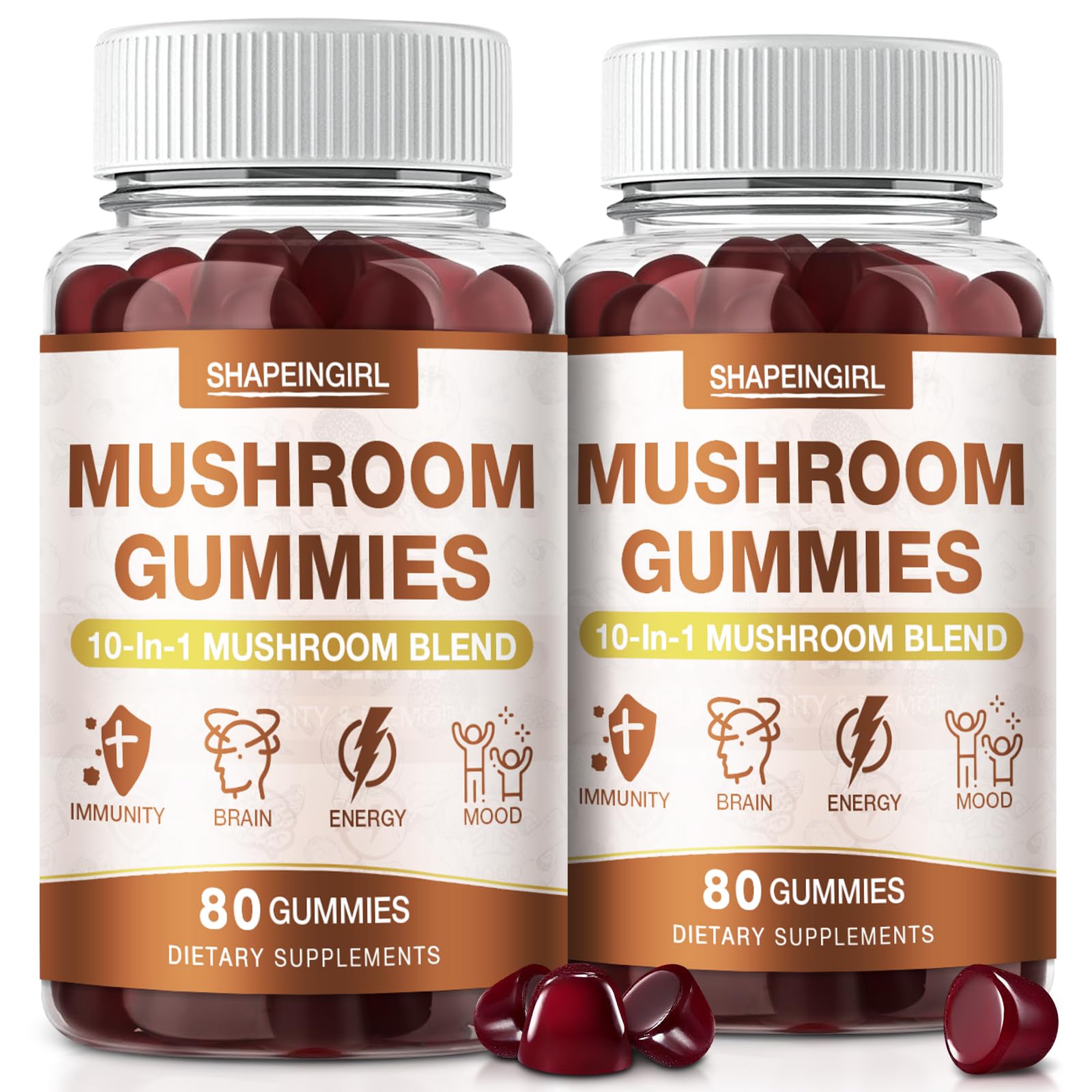 SHAPEINGIRL Mushroom Gummies for Adults 10-in-1 Advanced Blend - Immune Support & Cognitive Boost Mushroom Supplement Complex with Lion s Mane Reishi Chaga Cordyceps 160 Gummies