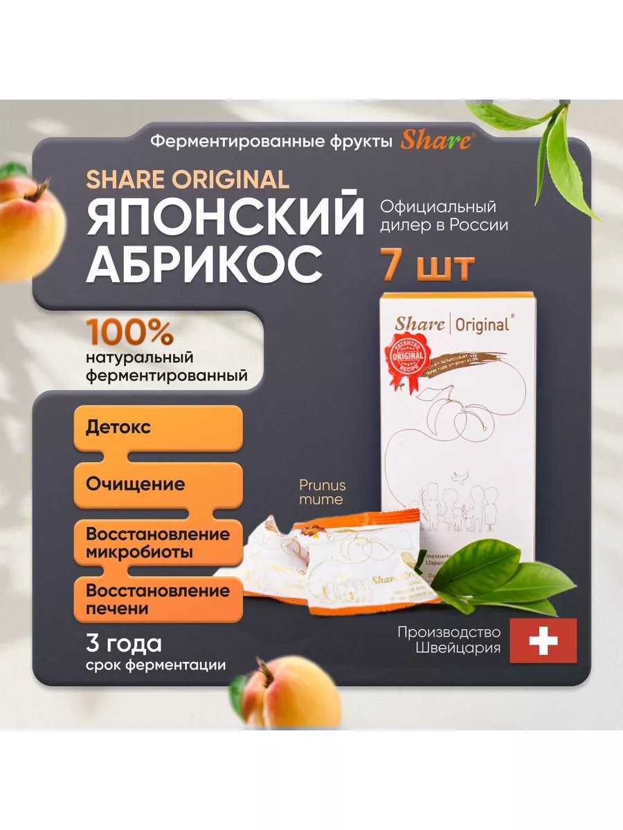 Share Original Ферментированный абрикос (PRUNUS MUME) 7 шт, Детокс для ЖКТ