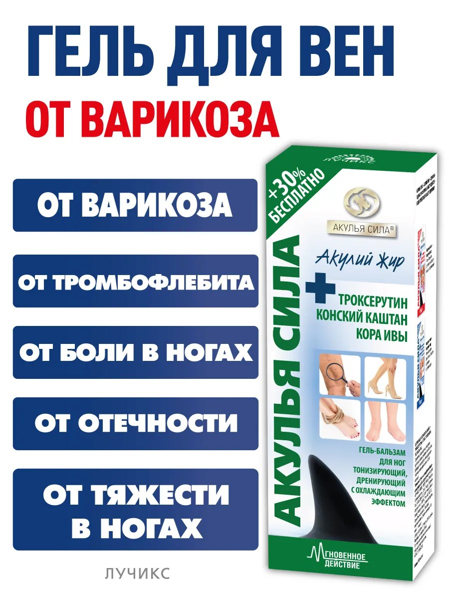 Акулья сила Мазь от варикоза и тяжести в ногах Акул ий жир с конским каштаном. ЛУЧИКС