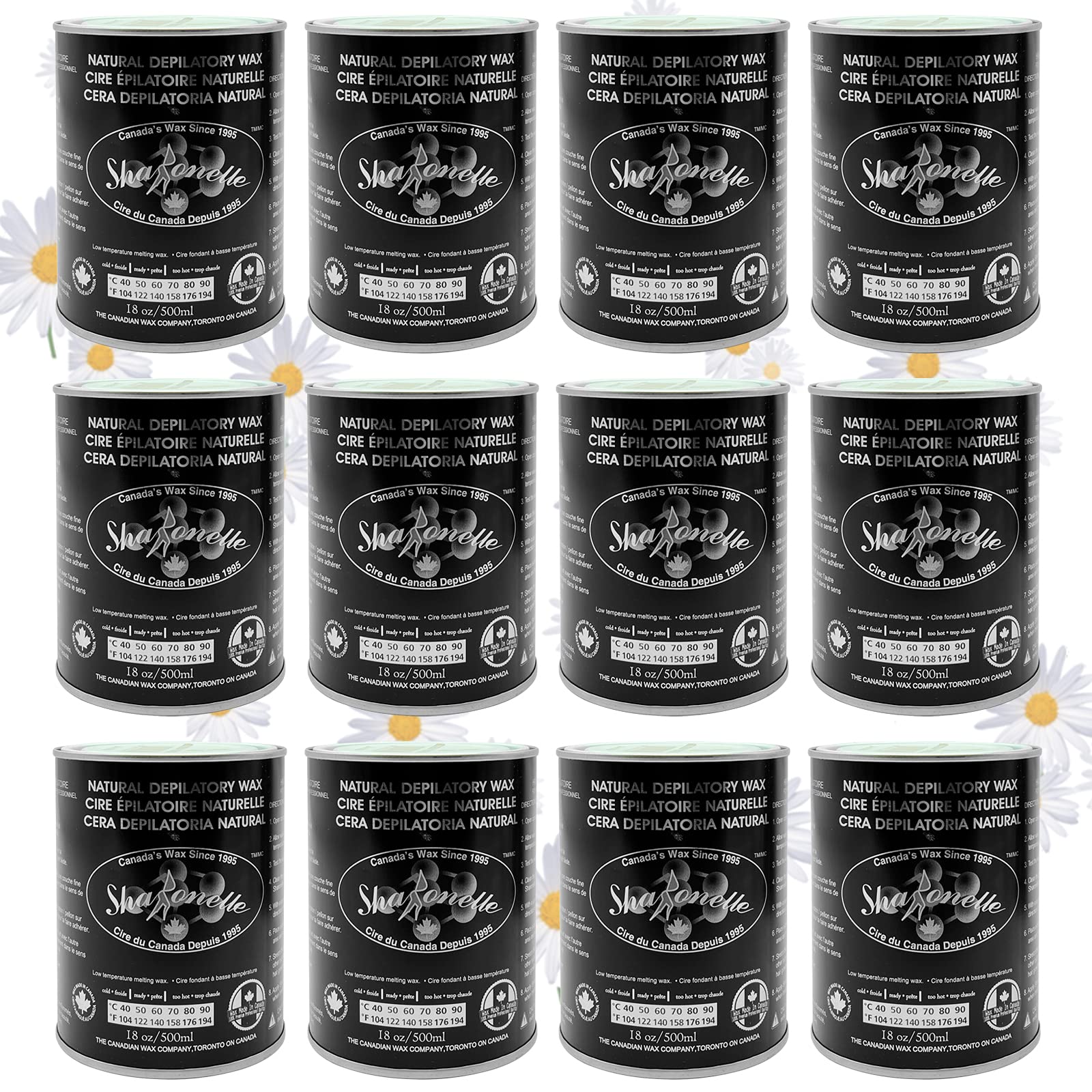 Sharonelle Soft Wax All Purpose Hair Removal Natural Depilatory Canned Wax for Sensitive Skin Canada-Made Melting Wax in Black color Canned Package (12PC Azulene) 500 ml (Pack of 12) Azulene