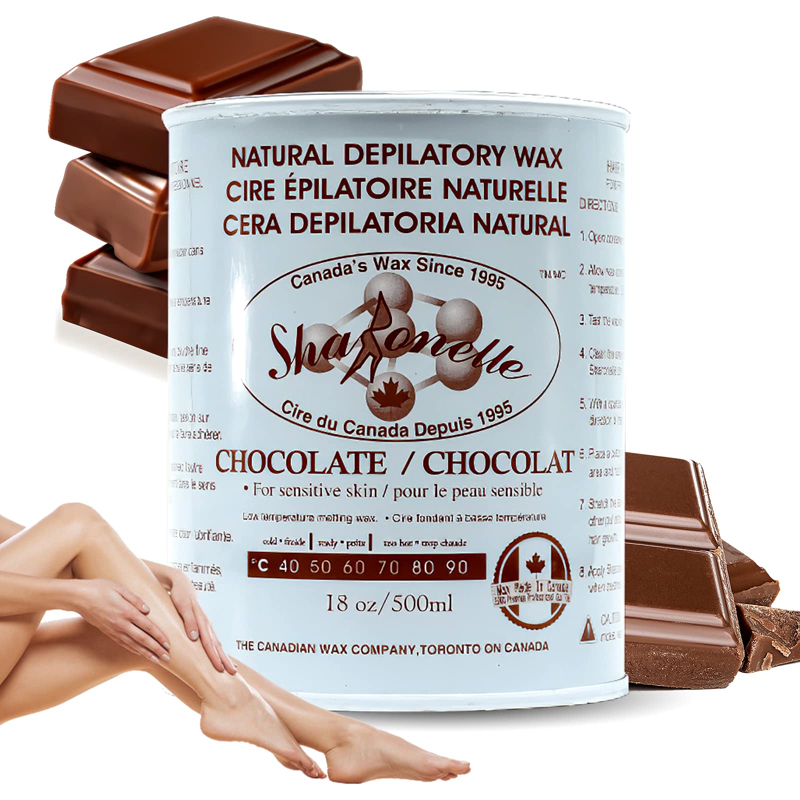 Sharonelle Soft Wax All Purpose Hair Removal Natural Depilatory Canned Wax for Sensitive Skin Canada-Made Melting Wax in Black color Canned Package (1PC Chocolate) 500 ml (Pack of 1) Chocolate