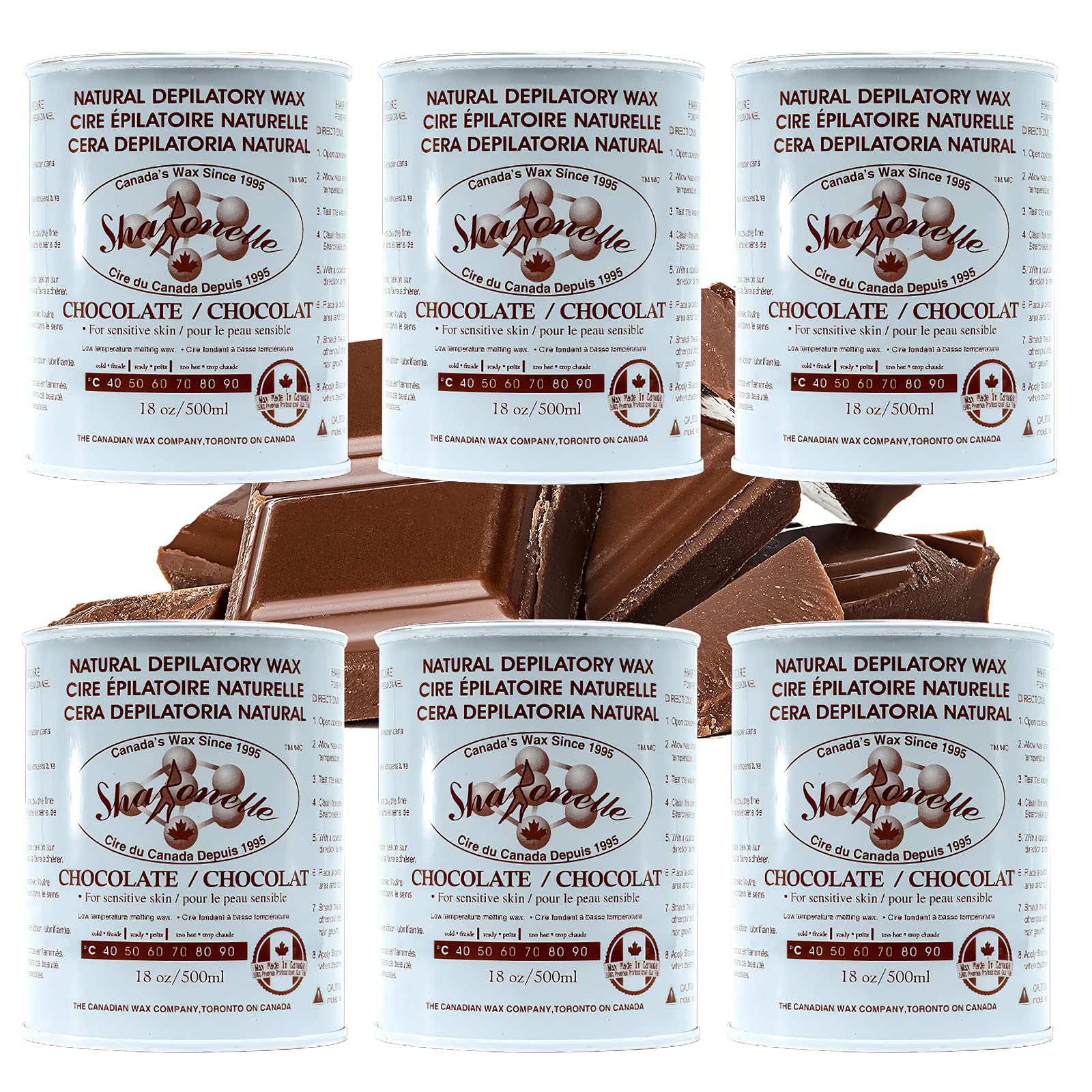 Sharonelle Soft Wax All Purpose Hair Removal Natural Depilatory Canned Wax for Sensitive Skin Canada-Made Melting Wax in Black color Canned Package (6PC Chocolate) 500 ml (Pack of 6) Chocolate